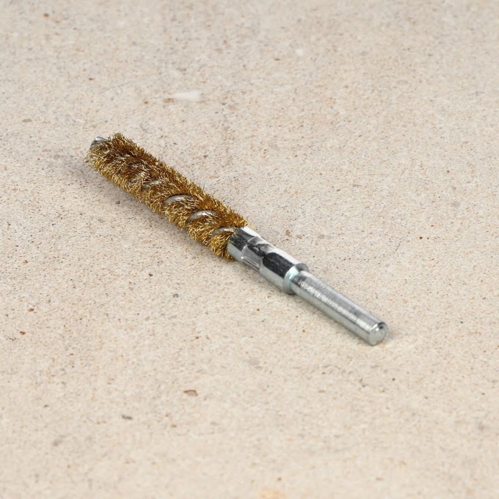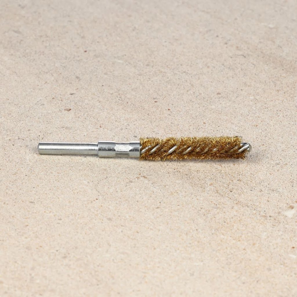 The SK11 Spiral Brass Wire Brush is an excellent tool for interior pipe polishing and cleaning and for working on narrow areas and uneven surfaces. Featuring a 10 mm diameter and a flexible 6 mm shaft, this brush is compatible with electric drills, flexible shafts, and air drills. Its soft bristles are ideal for delicate surfaces, ensuring thorough cleaning without causing damage. It is suitable for use on non-ferrous metals like copper and brass, as well as on iron and wood surfaces.