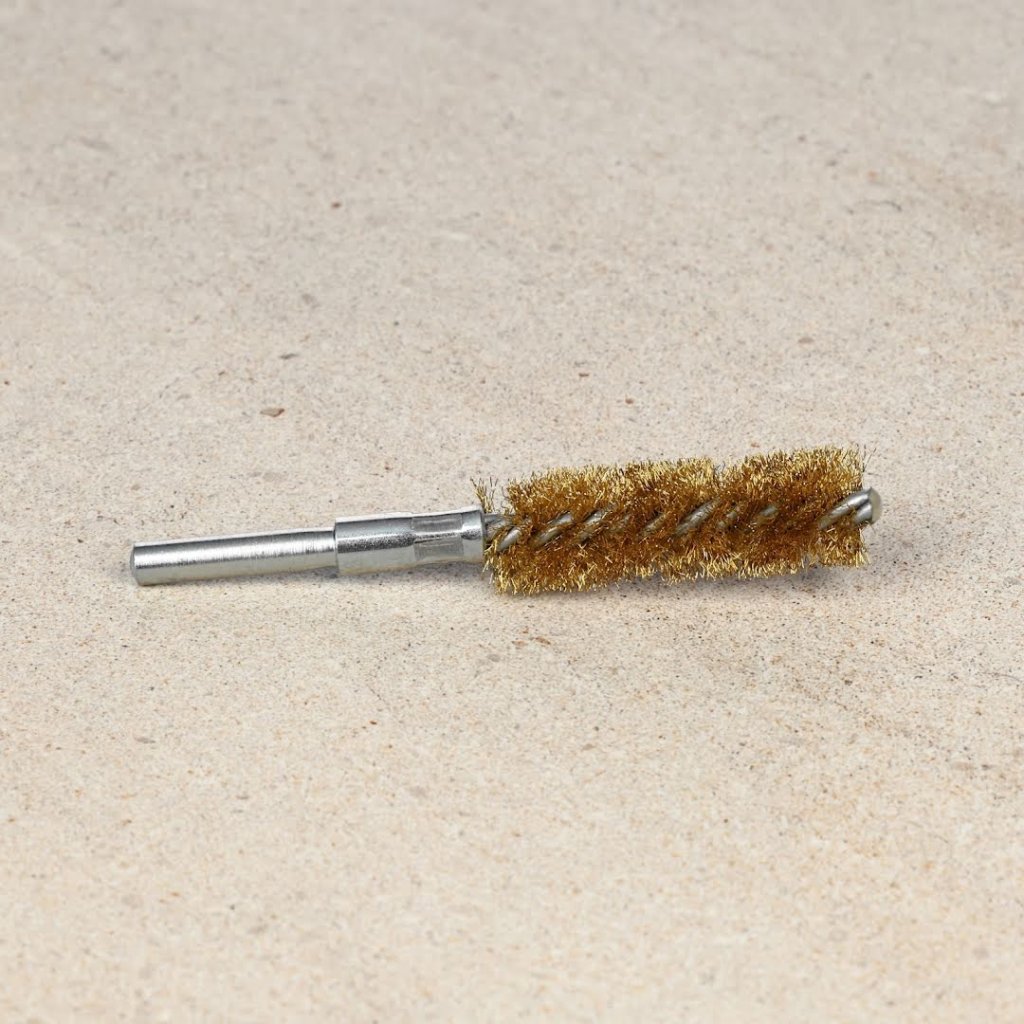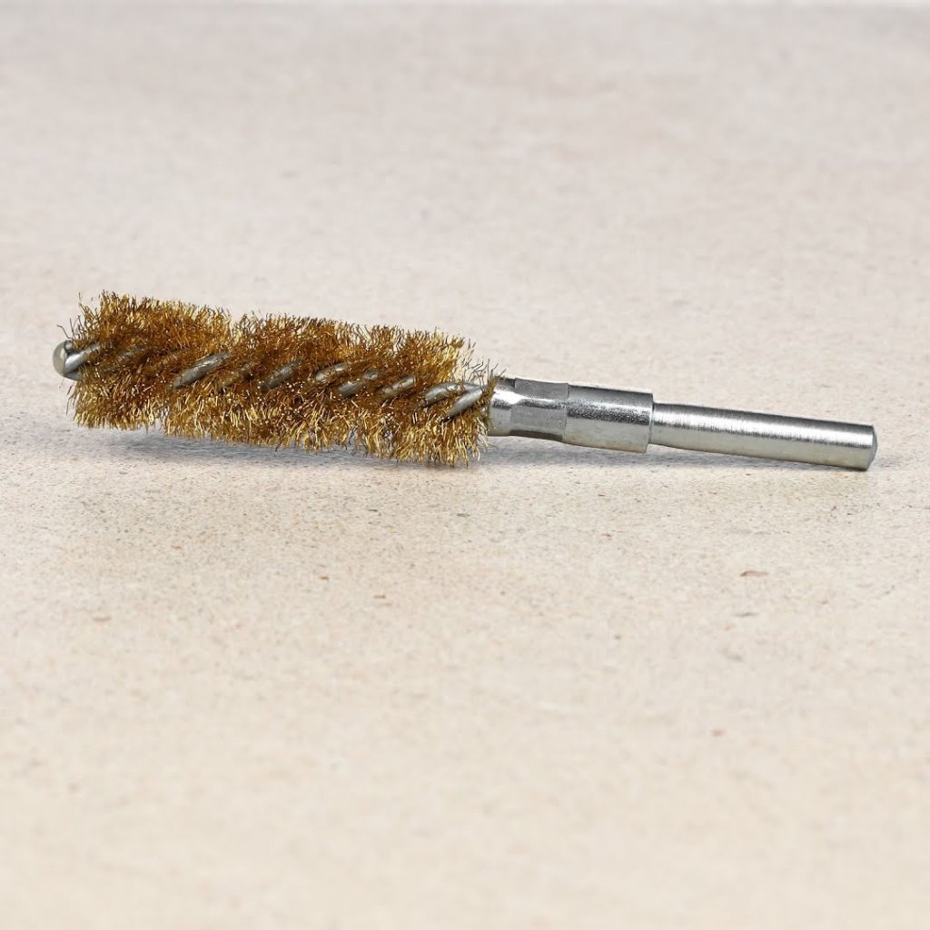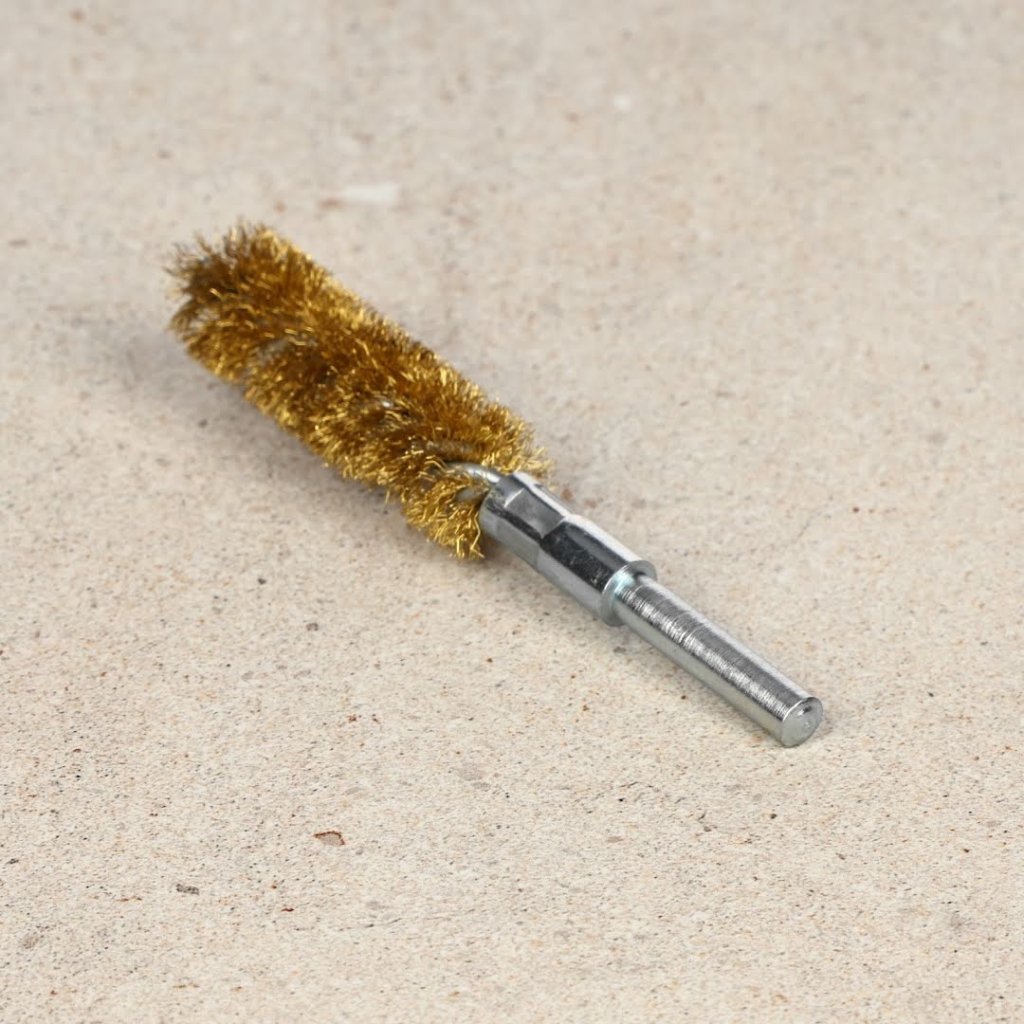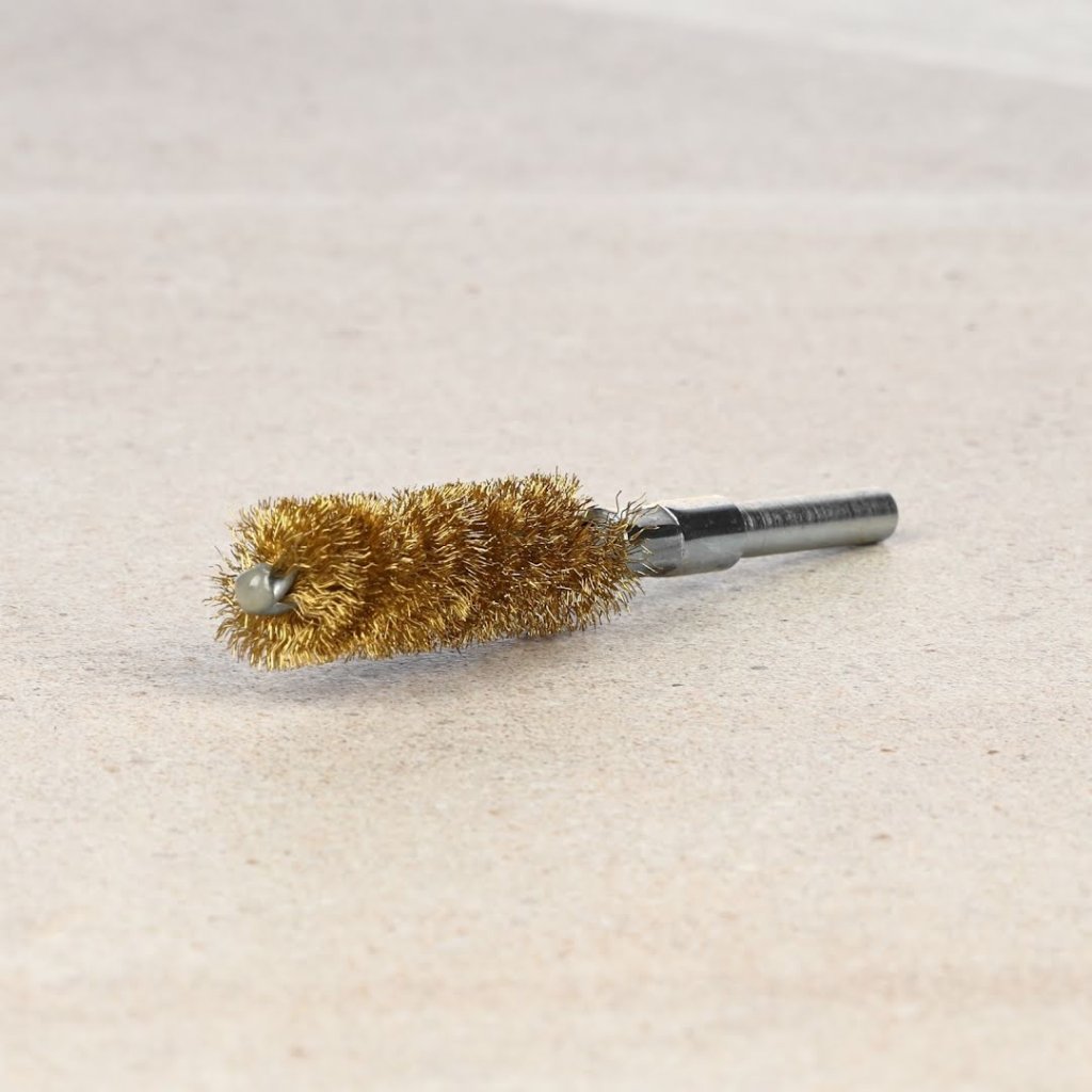 The SK11 Spiral Brass Wire Brush is ideal for polishing and cleaning the interior surfaces of pipes and other tight and uneven areas. Its soft bristles make it perfect for non-damaging applications on materials like copper, brass, iron, and wood. This versatile tool features a 6 mm shaft diameter and is compatible with electric drills, flexible shafts, and air drills.