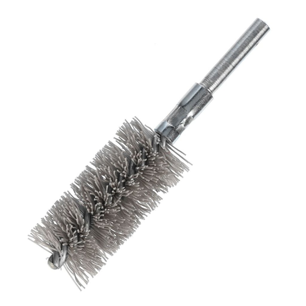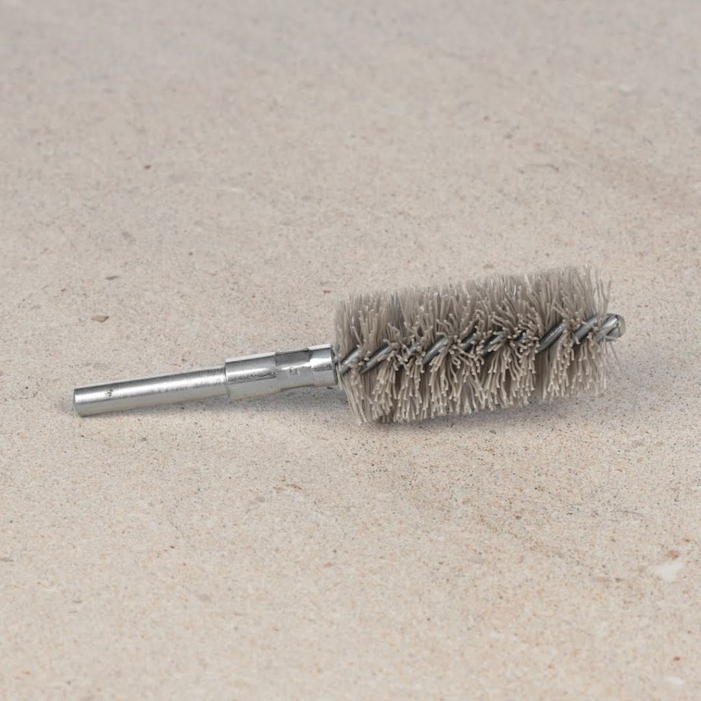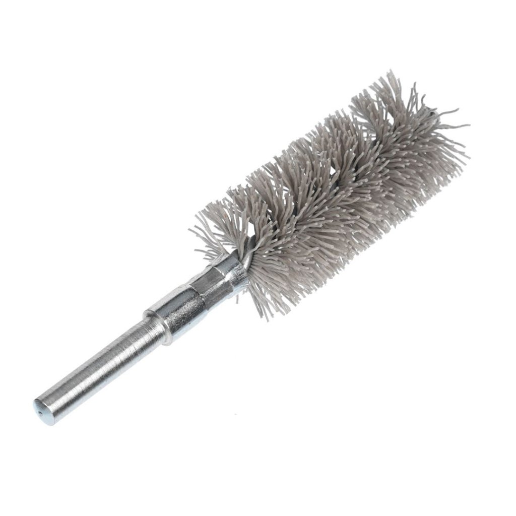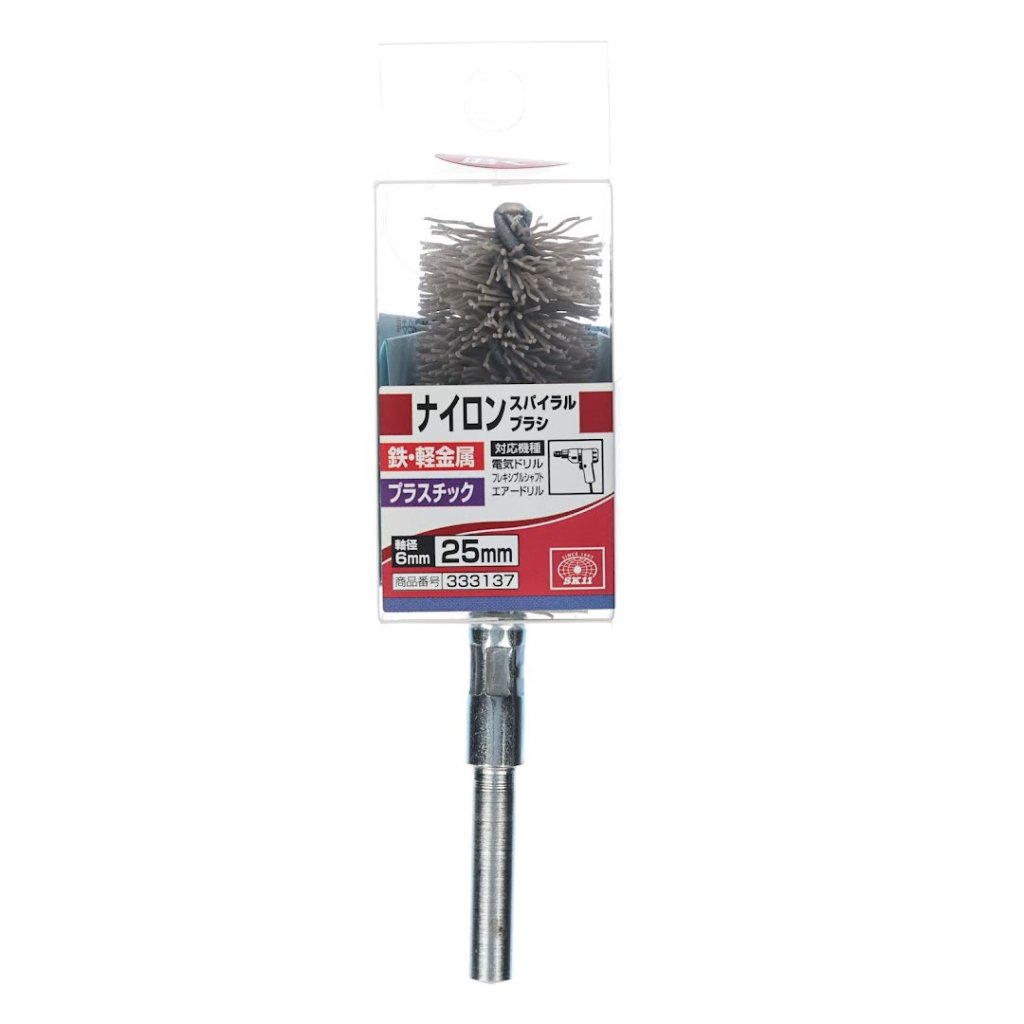 The SK11 Spiral Nylon Brush is a versatile tool for effectively cleaning and polishing. This brush is ideal for removing rust from iron and cleaning surfaces of stainless steel, copper, brass, and resin. It features a 25 mm diameter and a 6 mm shaft, making it compatible with electric drills, flexible shafts, and air drills. Its lightweight design, weighing only 20 g, ensures ease of use. Use safety gear like protective glasses for safe operation.