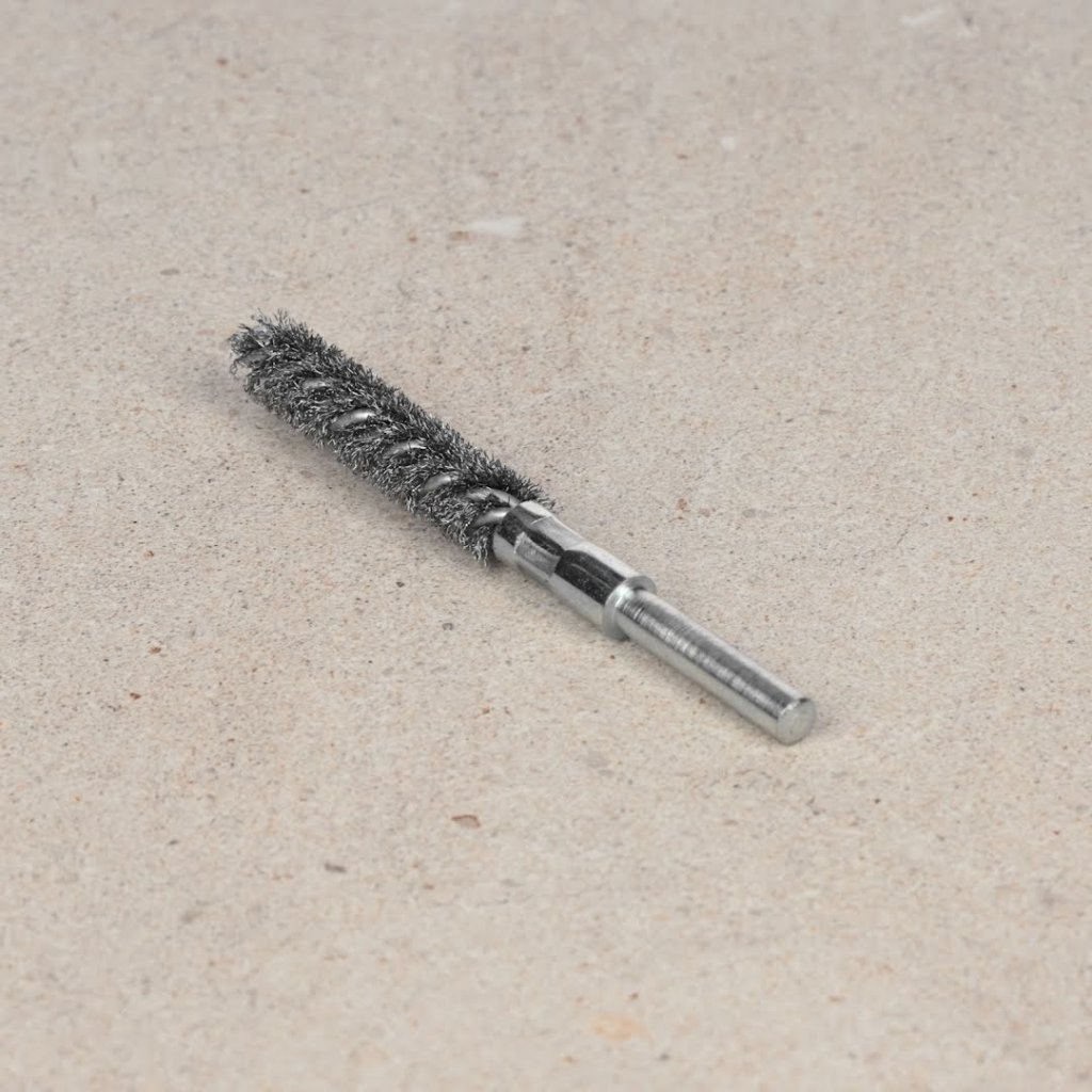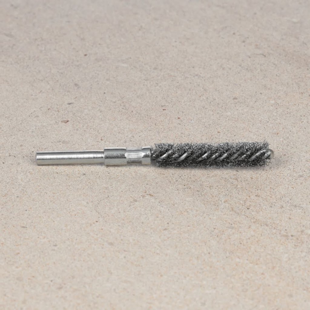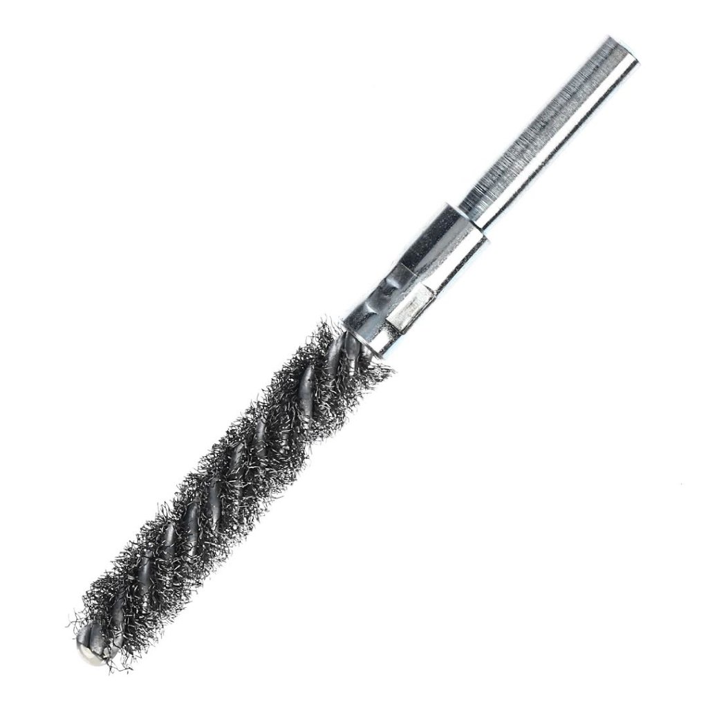 The SK11 Spiral Brush Wire is ideal for cleaning the interior of pipes, tight spaces, and uneven surfaces. This versatile brush is perfect for removing rust, stripping paint, cleaning dirt, and deburring metal surfaces. It features a 6 mm shaft diameter and is compatible with electric drills, flexible shafts, and air drills. The compact size (10 mm diameter, 105 mm height) and lightweight design (20 g) make it easy to handle and maneuver.