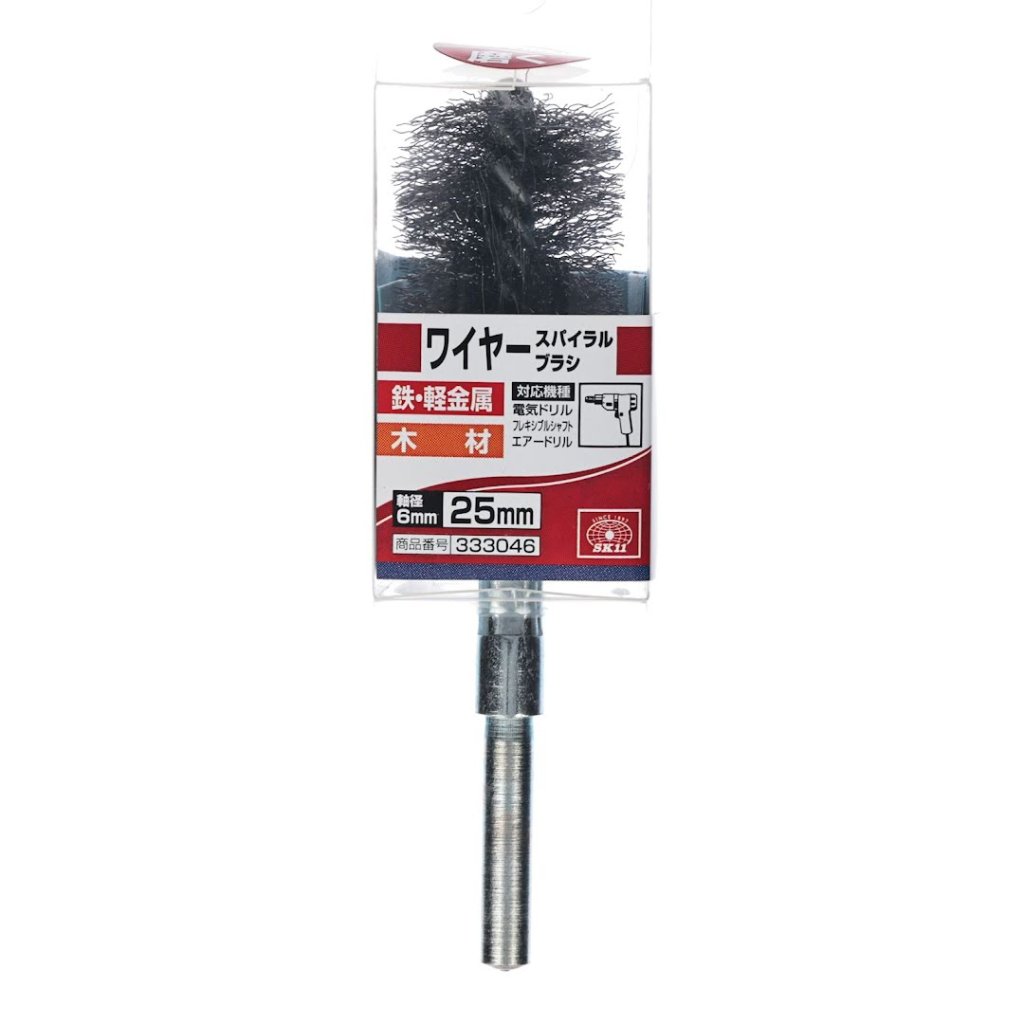 The SK11 Spiral Wire Brush is a versatile tool that removes rust, paint, and dirt from metals. It features a 6 mm shaft diameter and a 25 mm brush diameter. It is ideal for cleaning the inner surfaces of pipes and other hard-to-reach or uneven areas. Its shaft is compatible with electric drills, flexible shafts, and air drills and is perfect for various heavy-duty cleaning tasks.