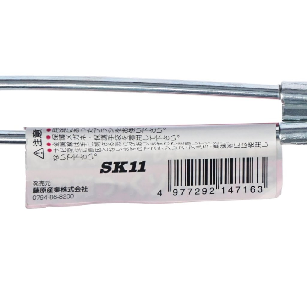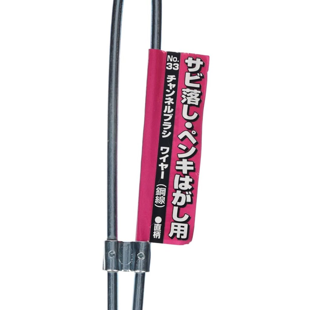 The SK11 Steel Channel Brush, model No.33, is designed for effective rust removal and paint stripping. This brush has a straight handle and wire steel bristles, providing strong resilience for tough cleaning tasks. Measuring 19 mm in width, 218 mm in height, and 24 mm in depth, it weighs only 60 g, making it lightweight and easy to handle.
