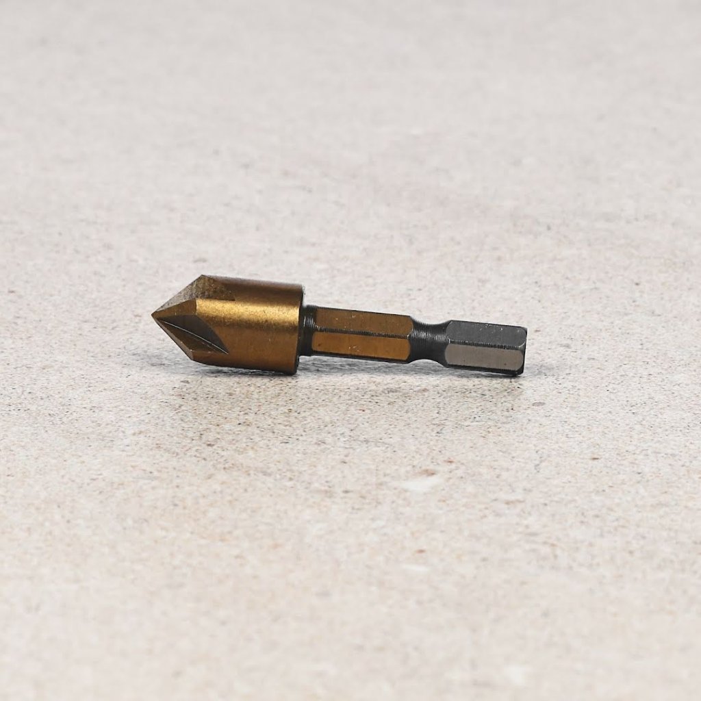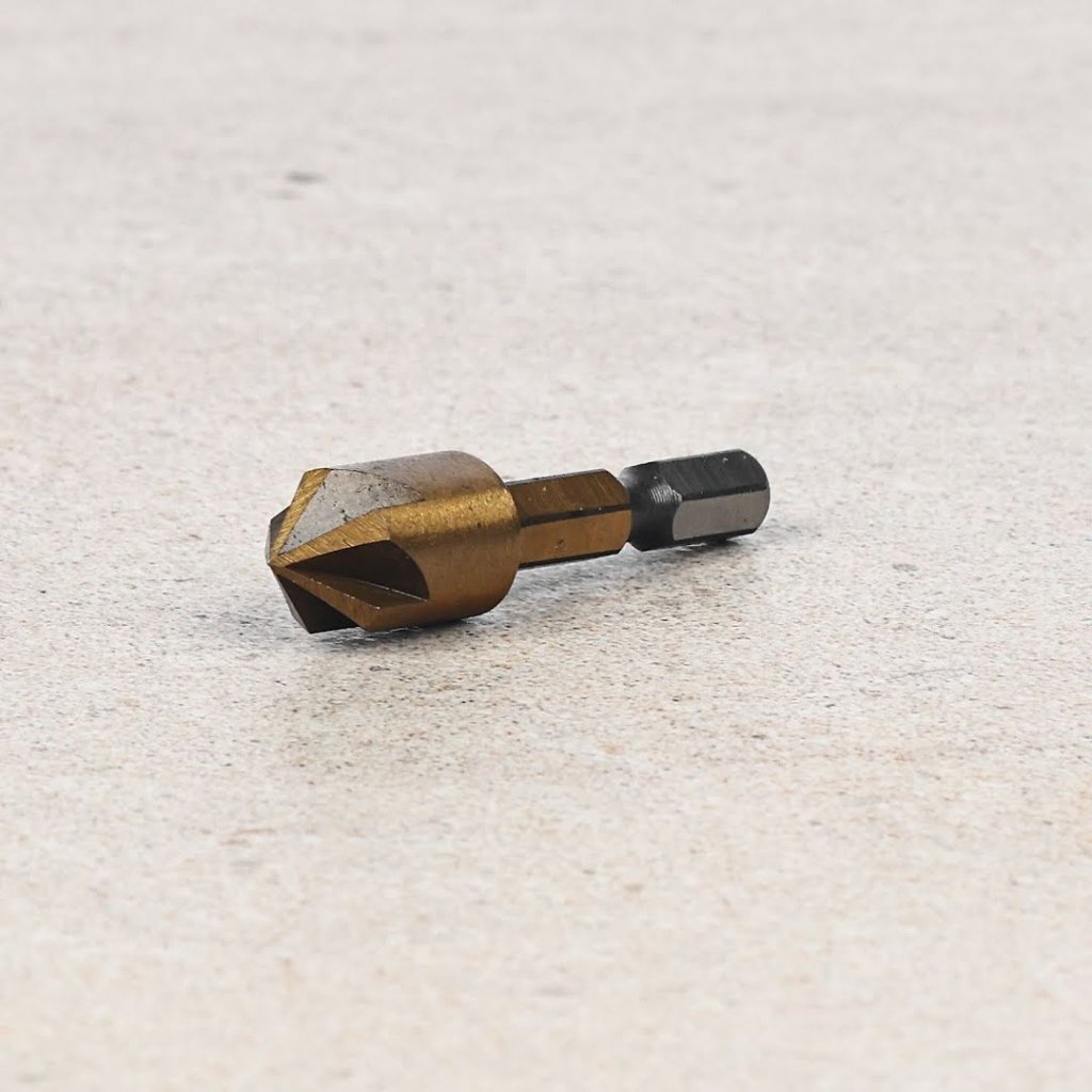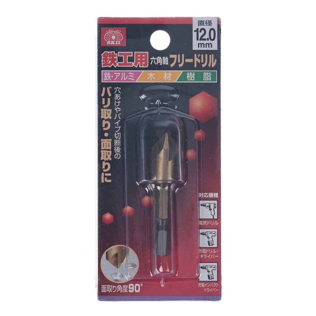 The SK11 Countersink Drill Bit is designed for deburring and chamfering materials such as iron plates, aluminum sheets, and wood. Featuring a 5-blade design with 10mm diameter, it ensures a smooth finish on the cutting surface. The hexagonal shaft allows for easy attachment and detachment with impact drivers. This tool is enhanced with a titanium coating for increased durability and heat resistance.