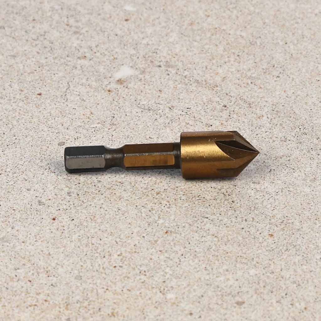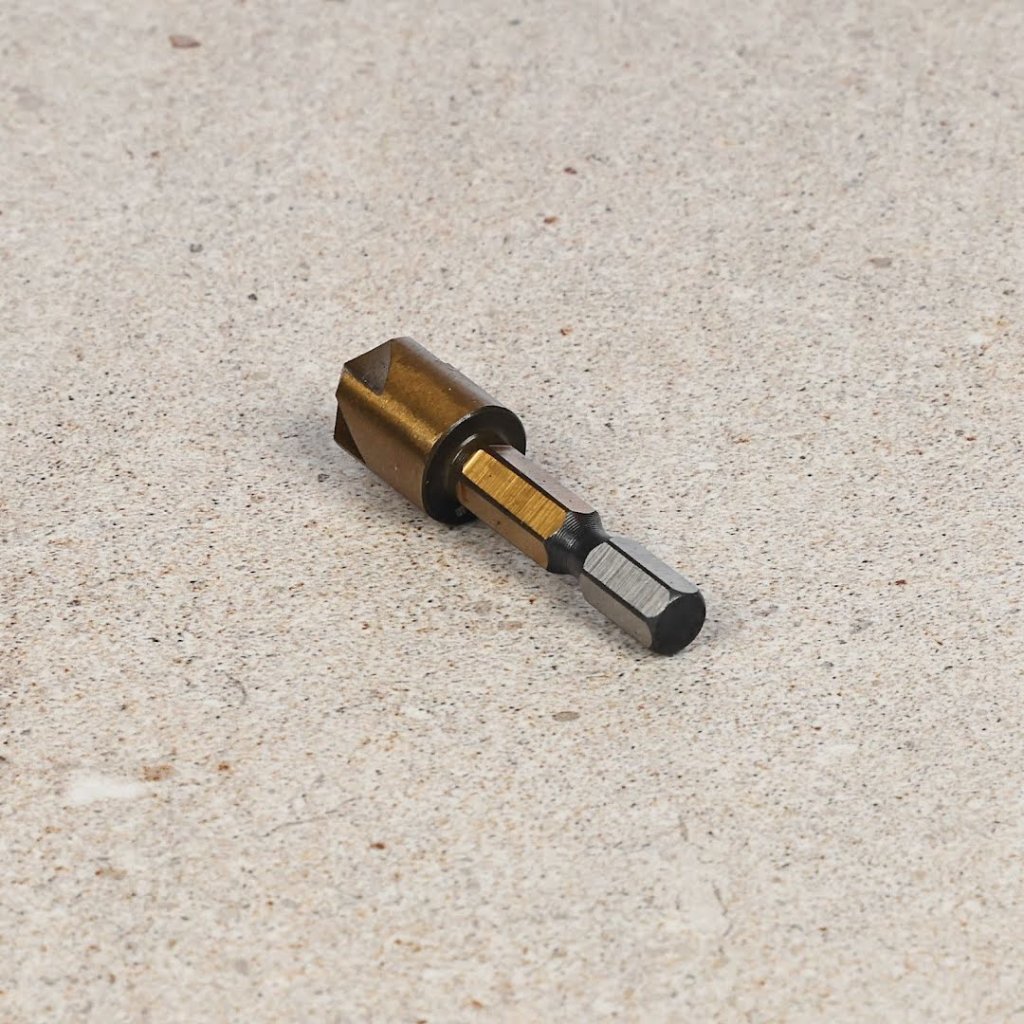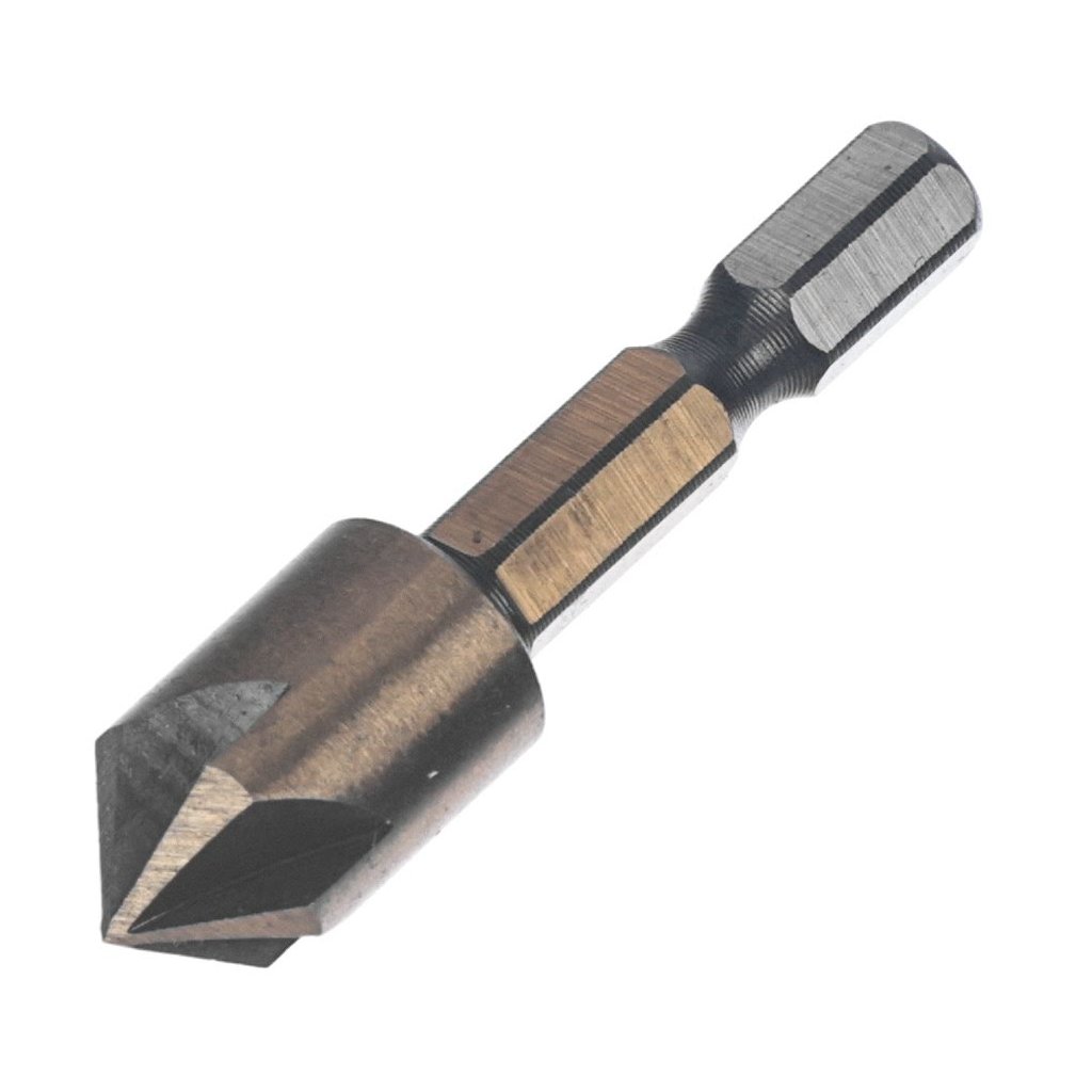 The SK11 Countersink Drill Bit is designed for deburring and chamfering materials such as iron plates, aluminum sheets, and wood. Featuring a 5-blade design with 10mm diameter, it ensures a smooth finish on the cutting surface. The hexagonal shaft allows for easy attachment and detachment with impact drivers. This tool is enhanced with a titanium coating for increased durability and heat resistance.