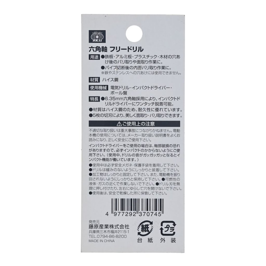 The SK11 Countersink Drill Bit is engineered for precision and durability. Featuring five cutting blades, it ensures a smooth and clean finish on chamfering and deburring tasks. Its hexagonal shaft allows for quick and easy attachment to an impact driver. Perfect for use on steel plates, aluminum sheets, and wood, this drill bit is also titanium-coated for enhanced heat resistance and longevity. It is ideal for electric drills, impact drivers, and drill presses.