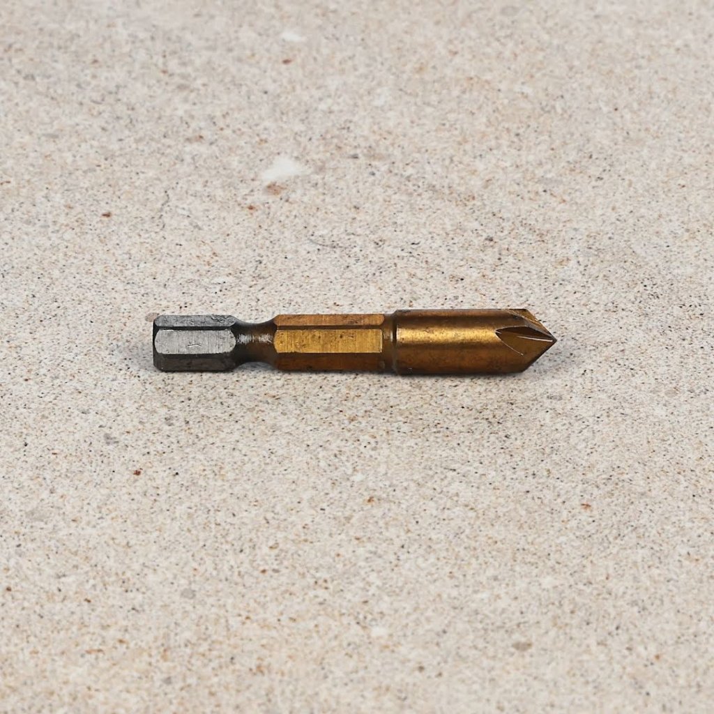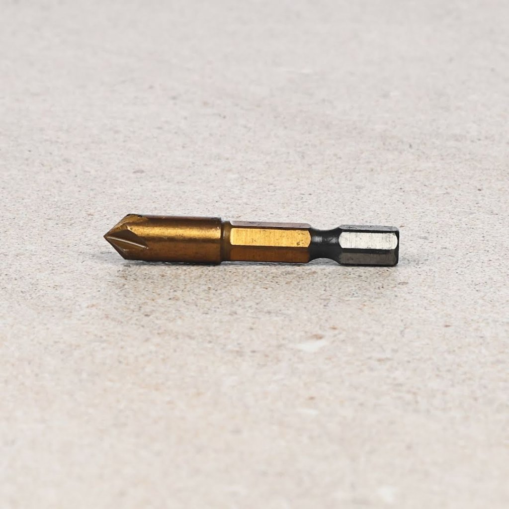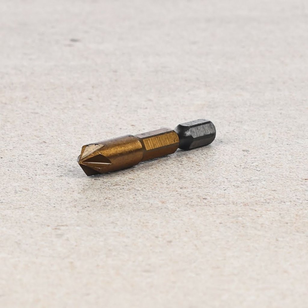 The SK11 Countersink Drill Bit is designed for clean and precise deburring and chamfering after drilling holes in metal, aluminum, wood, and pipes. It features five cutting blades, ensuring a smooth finish on the cut surface. The hexagonal shank allows quick attachment to impact drivers, while the titanium coating enhances heat resistance and durability. This drill is compatible with electric drills, impact drivers, and drill presses with a 90-degree chamfer angle.