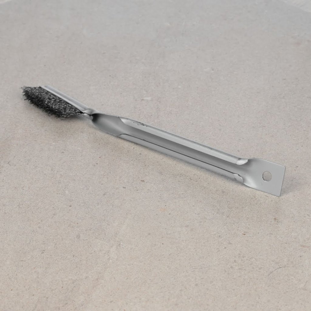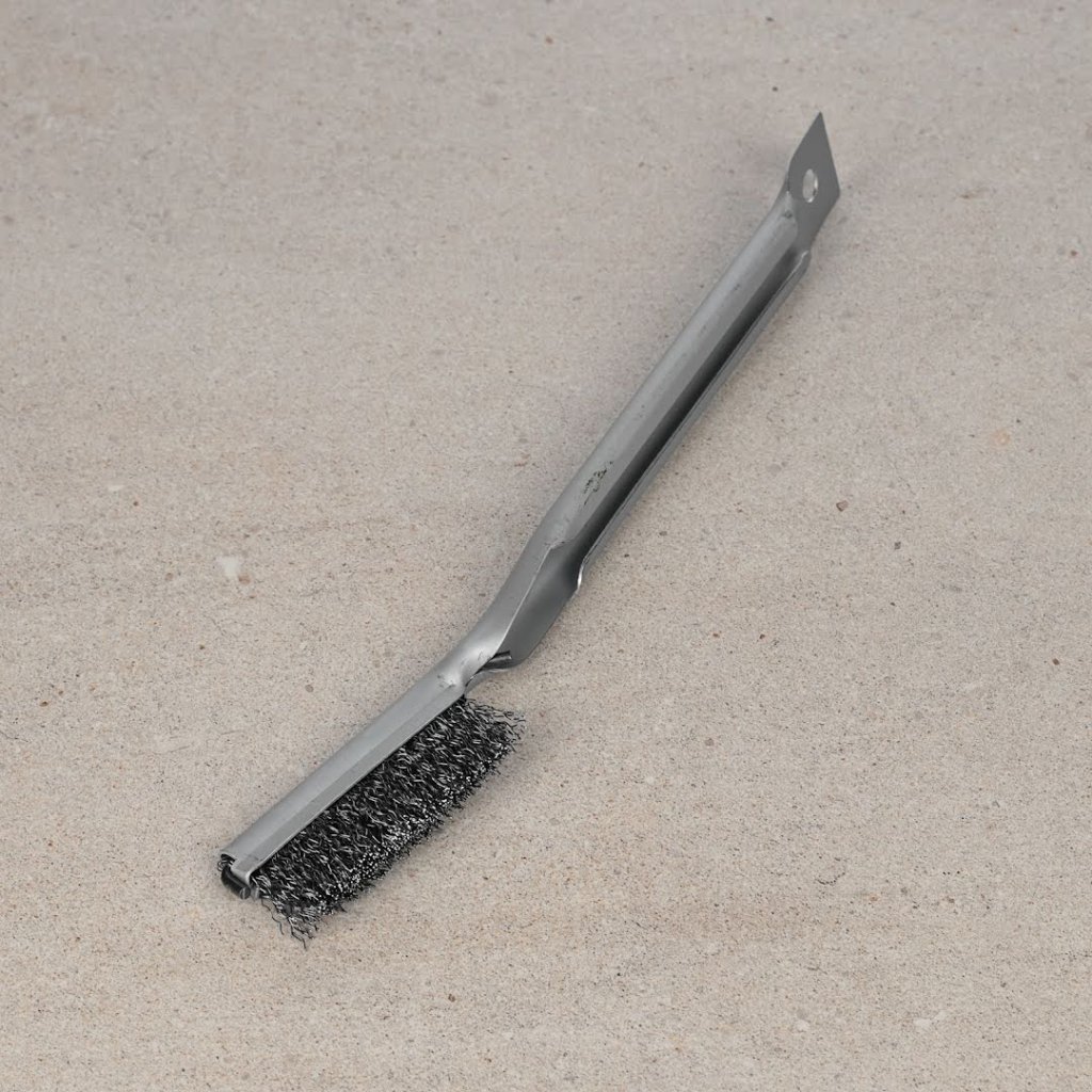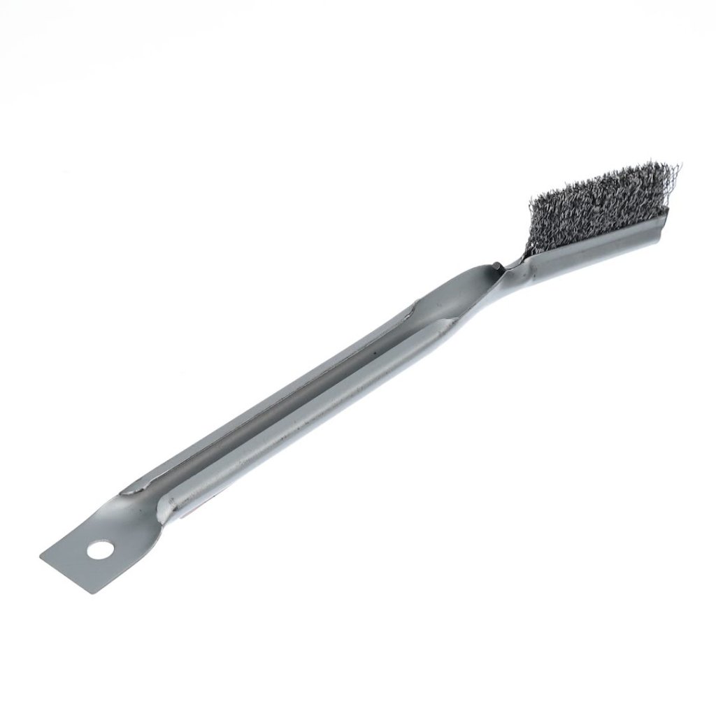 The SK11 Wire Brush with PVC Grip, model No.11, is an ideal tool for rust removal and paint stripping. Its dense wave-pattern steel bristles ensure efficient cleaning and surface preparation. This durable brush weighs 80 g and measures 25 mm in width, 270 mm in height, and 48 mm in depth.