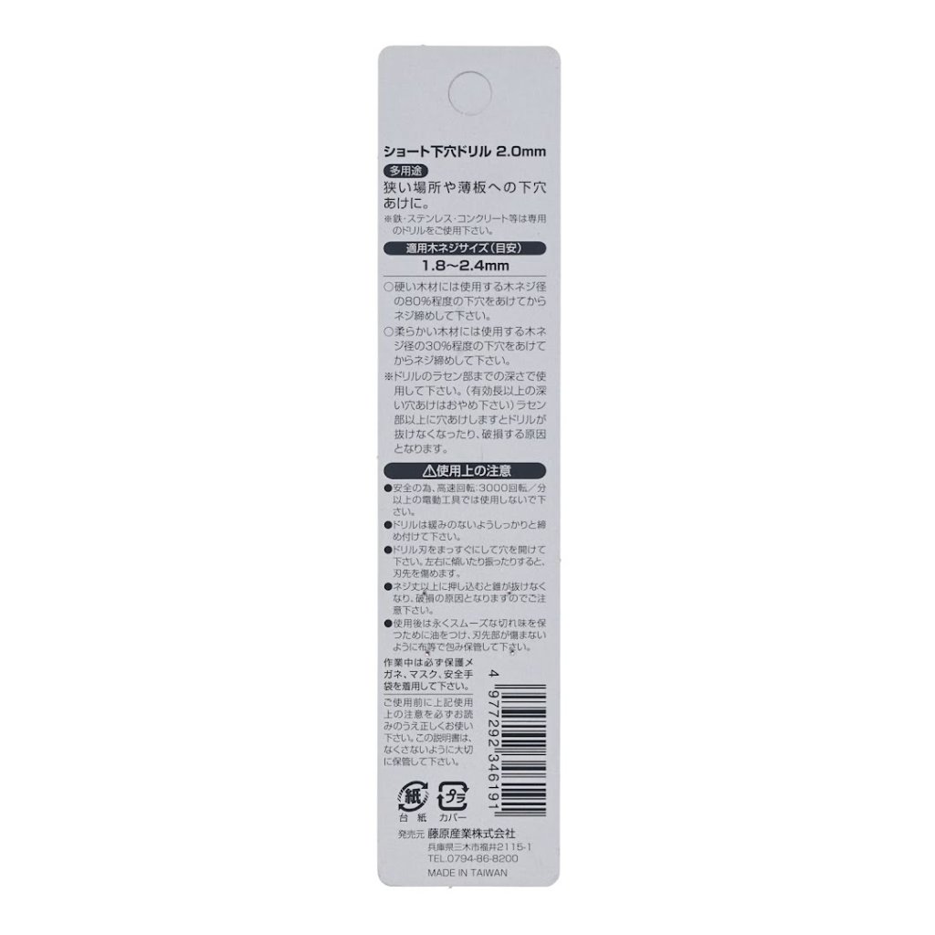 This SK11 HSS Tapered Drill Bit has a diameter of 2.0 mm. It is a durable, versatile bit for pilot holes in wood, bamboo, and plastic.