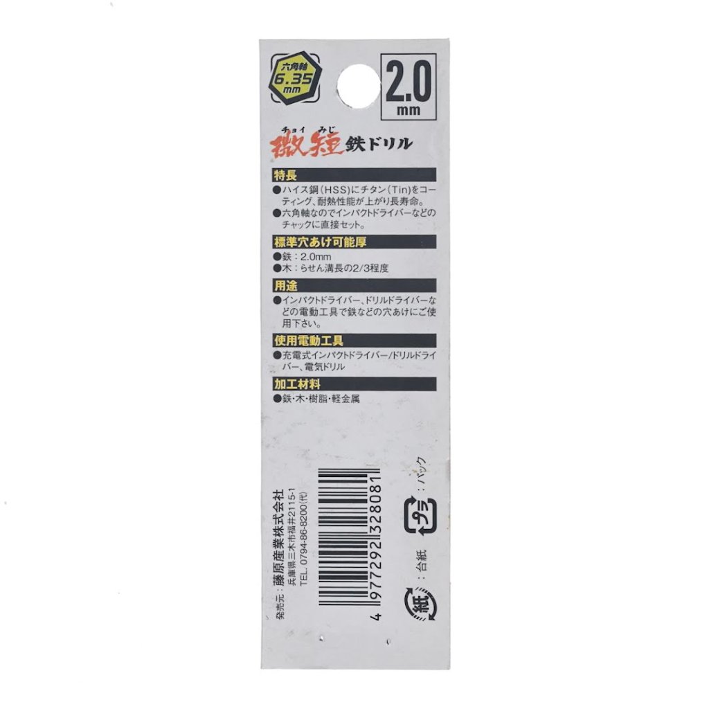 The SK11 TiN-Coated HSS Metal Drill Bit is a high-quality drill bit designed for versatile applications. Its 2.0 mm size and 6.35 mm hex shank can be easily set directly into impact drivers and drills. The drill bit is made from high-speed steel (HSS) and coated with titanium (TiN) for enhanced durability and heat resistance. It is suitable for drilling into iron, wood, resin, and light metals, making it an ideal tool for various DIY projects.