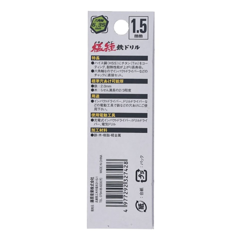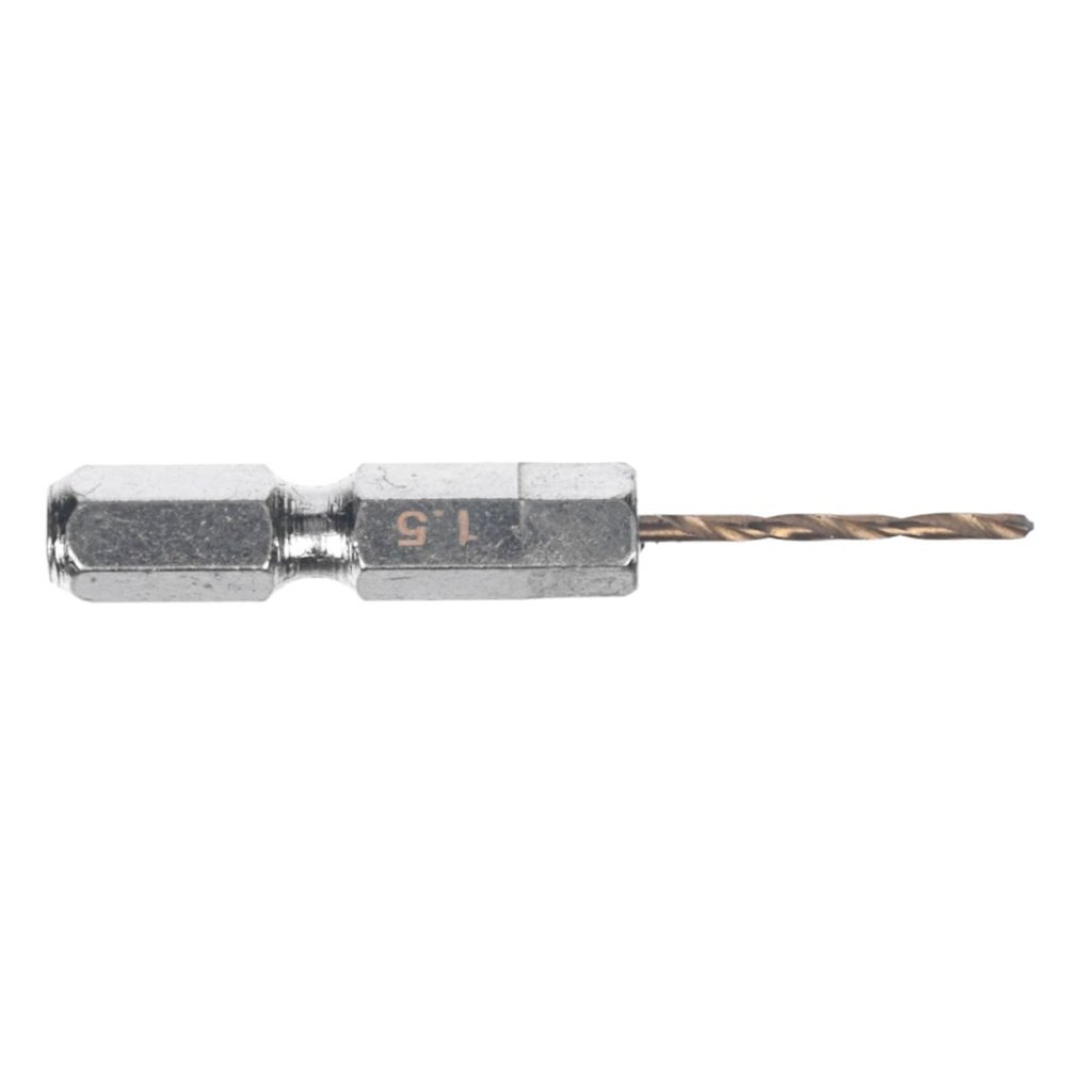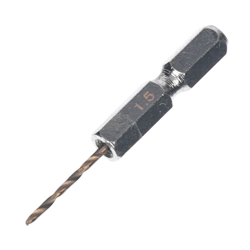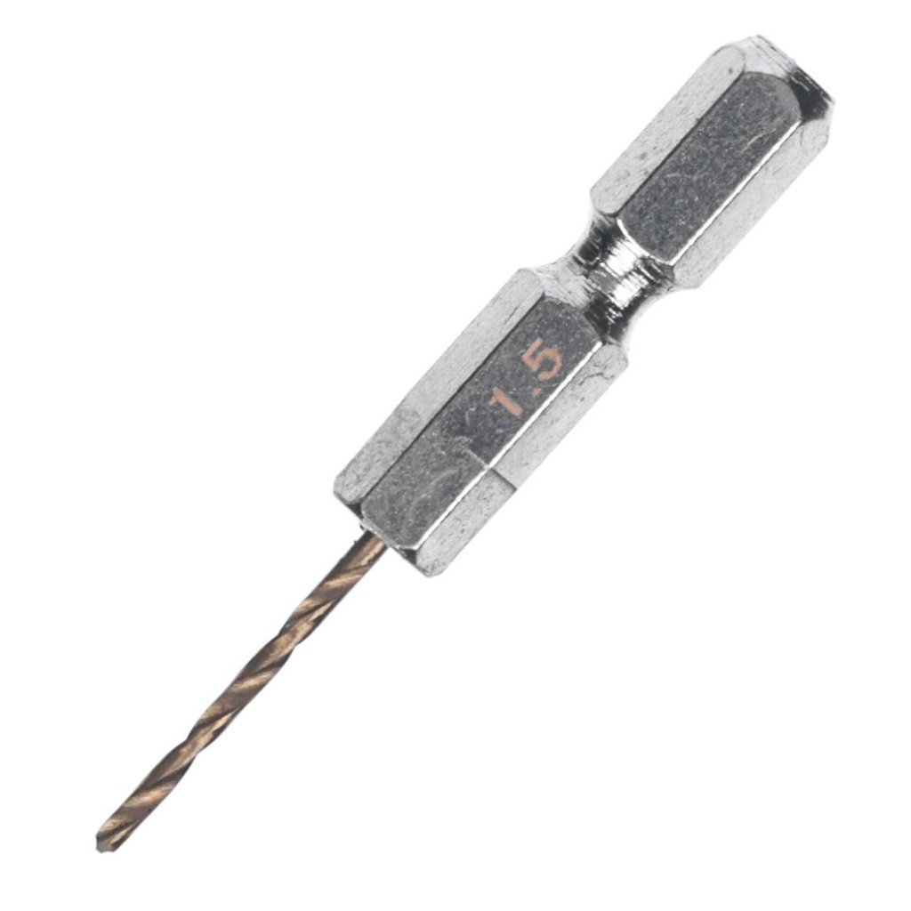 The SK11 TiN-Coated Metal Drill Bit, with a 1.5 mm diameter, is designed for precise drilling in iron, wood, resin, and light metals. It features high-speed steel (HSS) coated with titanium (TiN), offering enhanced durability and heat resistance. The 6.35 mm hexagonal shank allows for easy attachment to impact drivers and drills, and its compact length of 50mm ensures easy targeting and maneuverability.