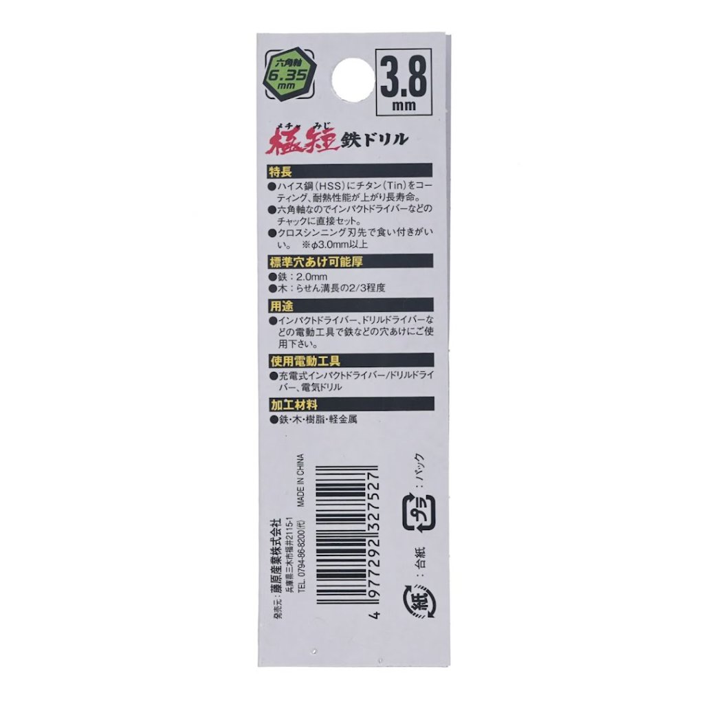 SK11 TiN-Coated Metal Drill Bit - 3.8 mm