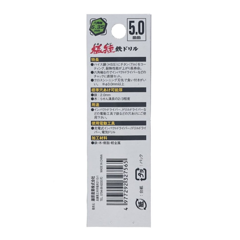 The SK11 TiN-Coated Metal Drill Bit is designed for precise drilling in iron, wood, resin, and light metals. It features a high-speed steel (HSS) construction with a titanium (TiN) coating, enhancing heat resistance and extending its lifespan. Its 6.35 mm hexagonal shank allows direct setup in impact drivers and drills. Additionally, the cross-thinning tip ensures excellent bite and precision during drilling. This tool is perfect for various DIY and professional applications, making it a reliable addition to your toolkit.