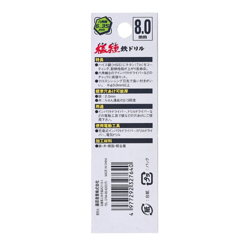 The SK11 TiN-Coated Metal Drill Bit is designed for precise drilling in iron, wood, resin, and light metals. Featuring a high-speed steel (HSS) with titanium (TiN) coating, this drill bit offers increased heat resistance and an extended lifespan. Its 6.35 mm hexagonal shank allows easy attachment to impact and drill drivers. The cross-thinning tip ensures exceptional grip and accuracy. This 8.0 mm drill bit is perfect for DIY and professional drilling needs.