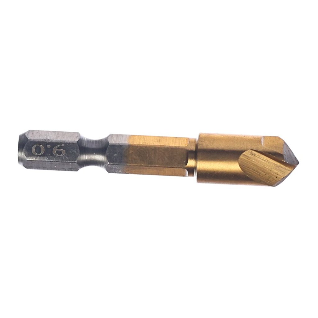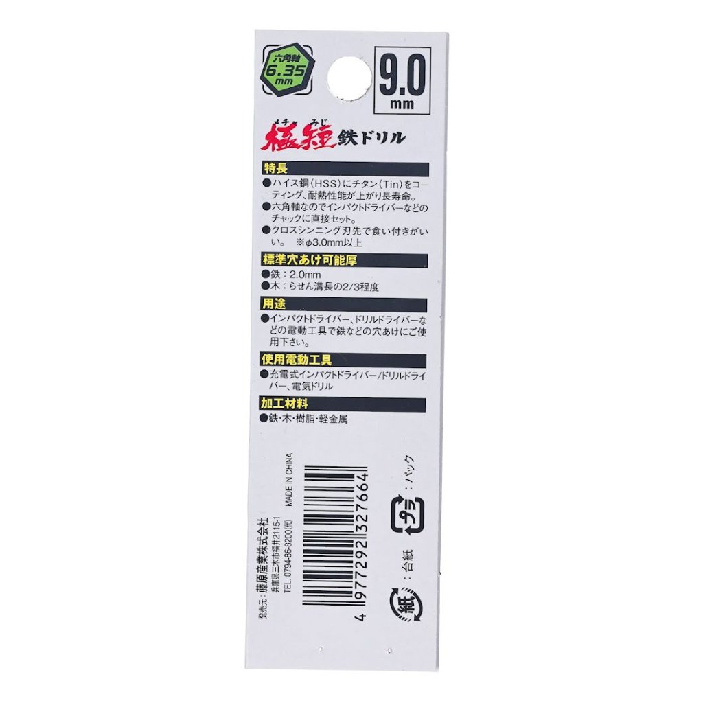 The SK11 TiN-Coated Metal Drill Bit is a versatile tool for drilling through iron, wood, resin, and light metals. It features a high-speed steel (HSS) construction with a titanium (TiN) coating, boasting enhanced heat resistance and durability. Its 6.35 mm hexagonal shank allows easy attachment to impact drivers and drills, while the cross-thinning point ensures excellent grip and precise drilling. This 9.0 mm bit is ideal for various DIY and professional applications.