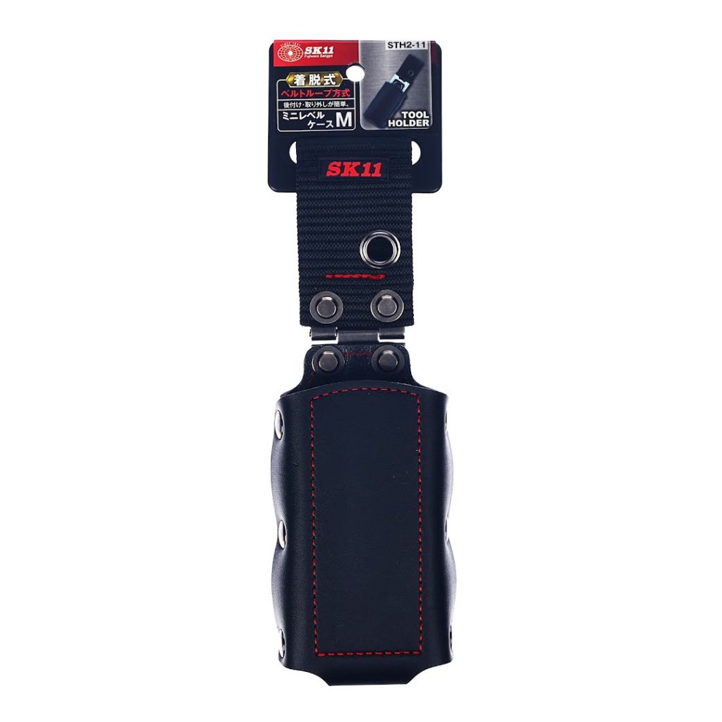 The SK11 Tool Holder, model STH2-11, is a versatile case for easy attachment and removal. It is ideal for storing and carrying tools. The case features a detachable loop belt system, making it simple to add or remove as needed. With dimensions of 70 mm width, 230 mm height, and 40 mm depth and weighing only 125 g, it accommodates belts up to 60 mm wide, ensuring convenient portability and accessibility for your tools.