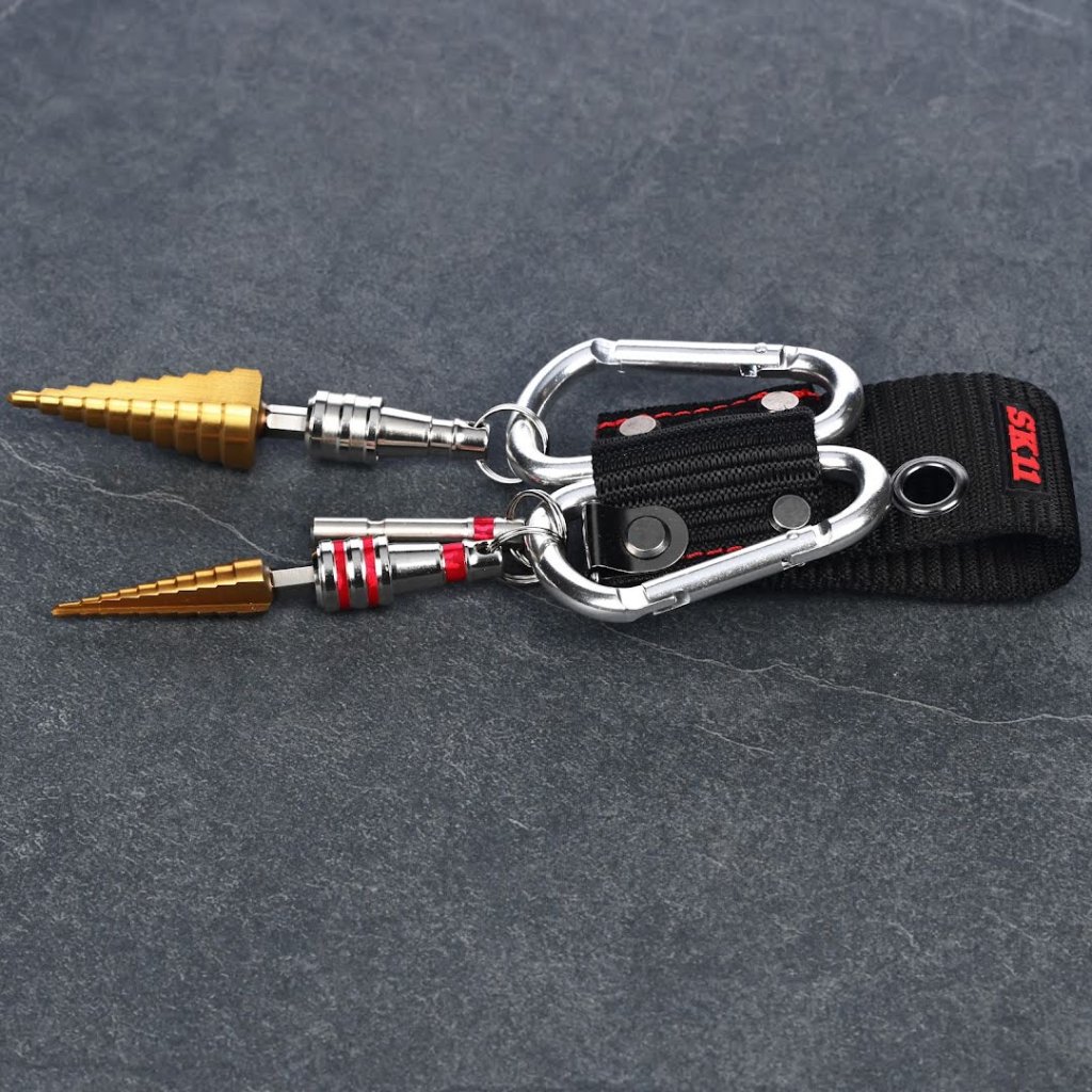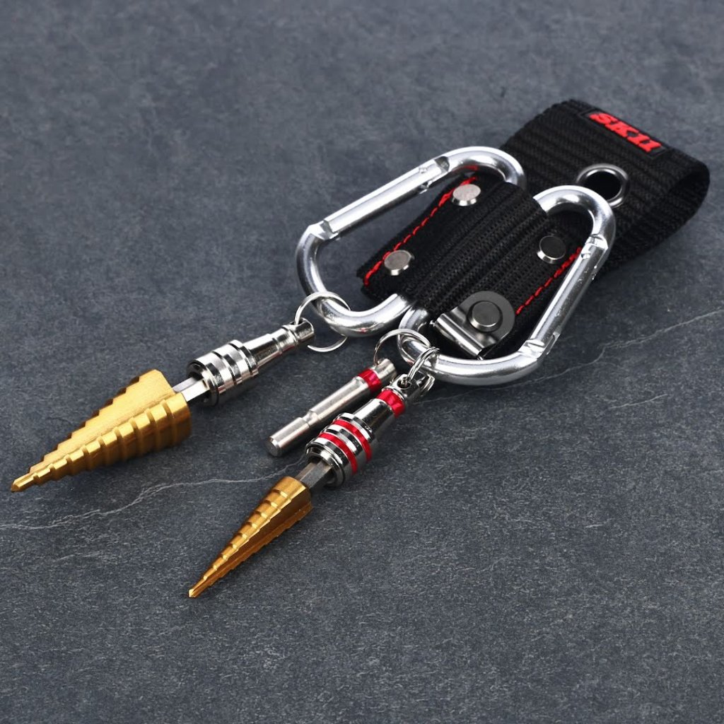 The SK11 Japanese Portable Bit Holder Set securely holds bits and keys with a screw-lock carabiner and quick-release mechanism. Made in Japan.