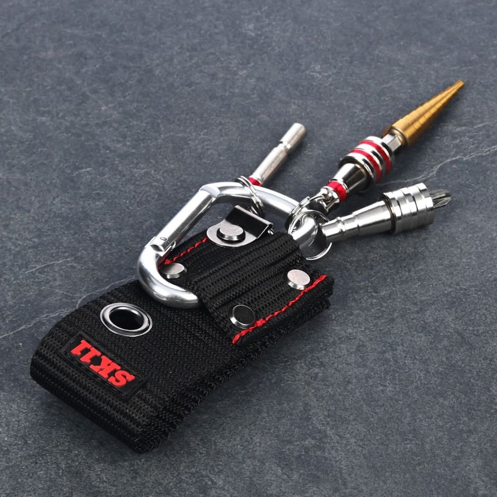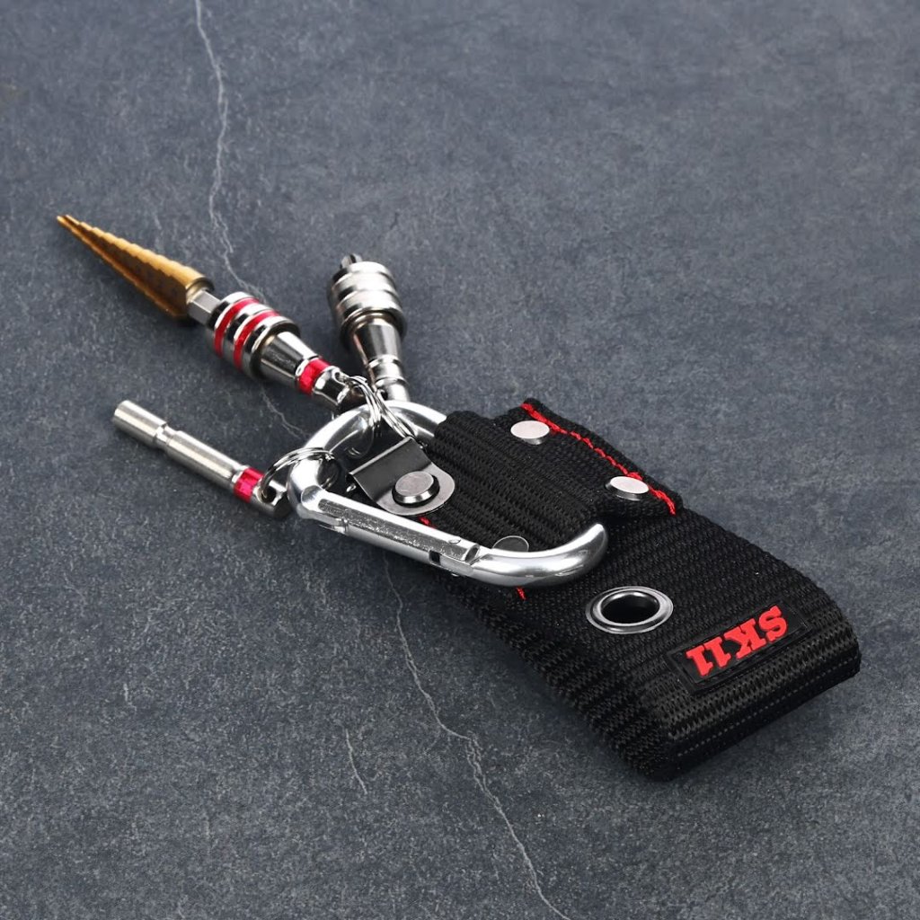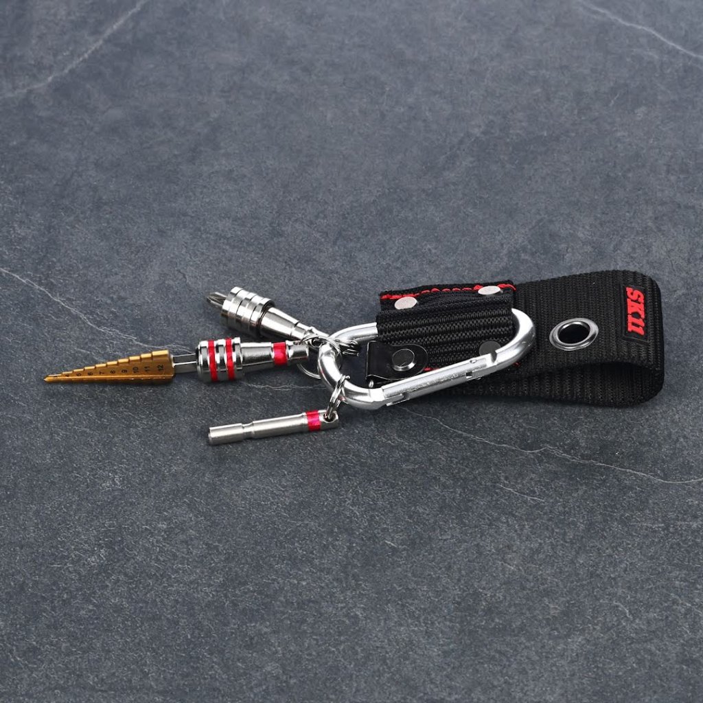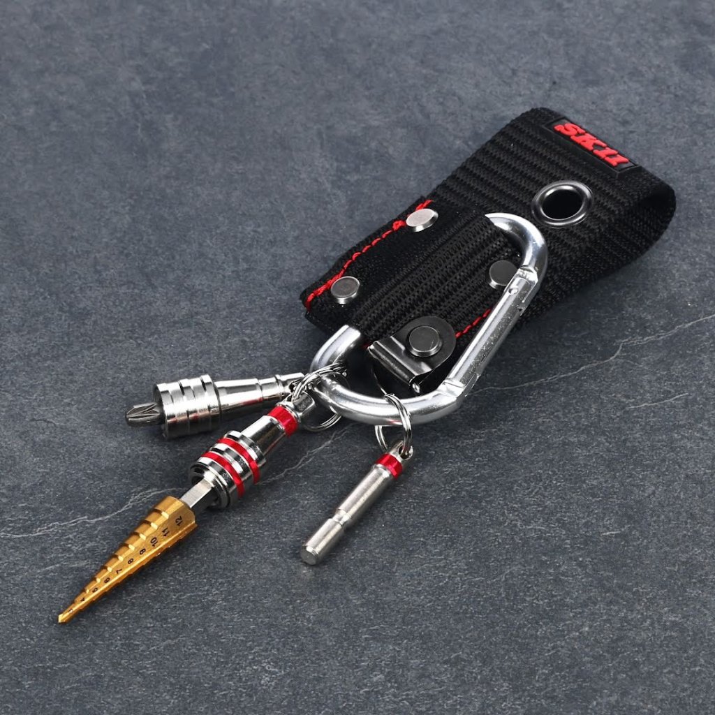 The SK11 Japanese Portable Bit Holder Set securely holds bits and keys with a screw-lock carabiner and quick-release mechanism.