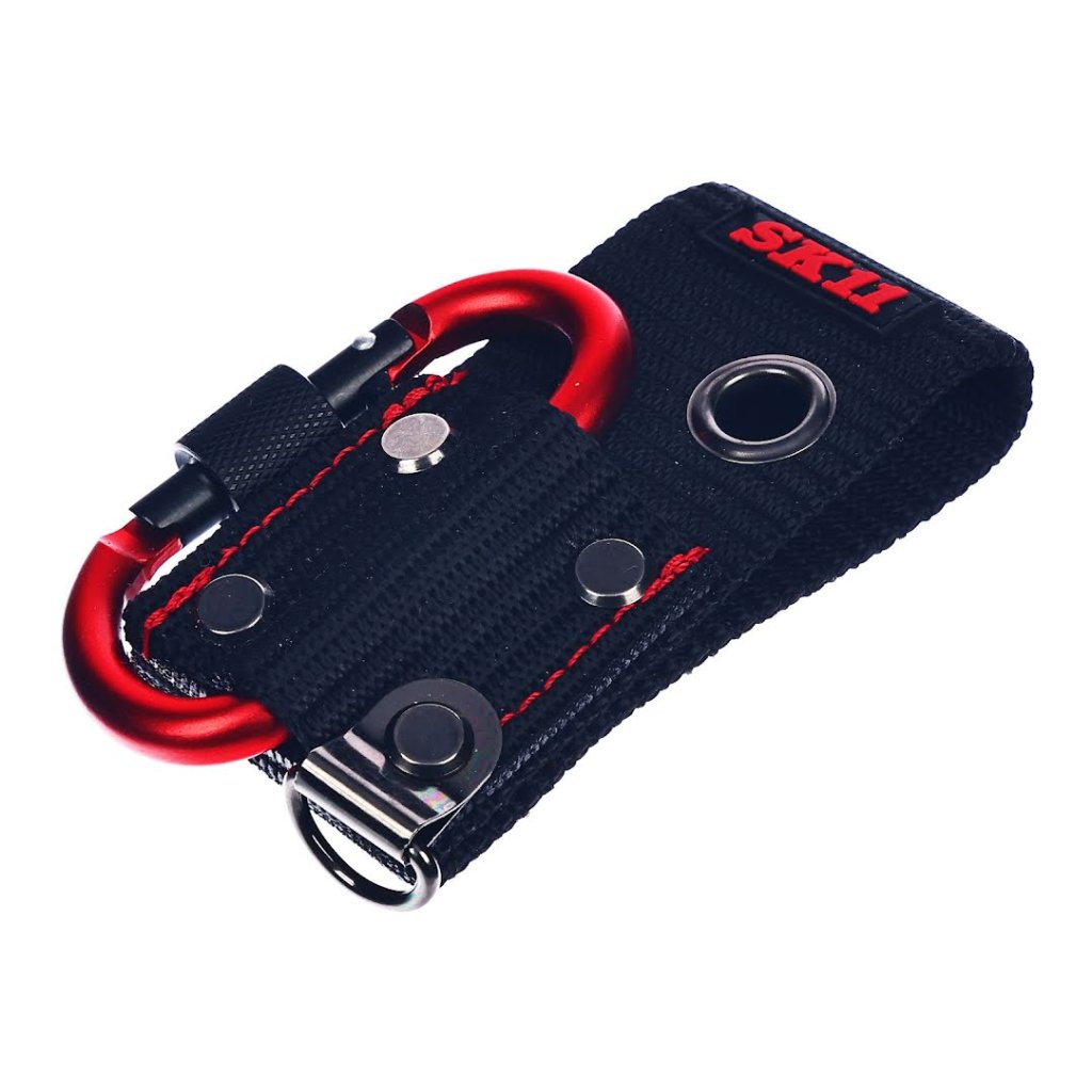 The SK11 Japanese Portable Bit Holder Set securely holds bits and keys with a screw-lock carabiner and quick-release mechanism.