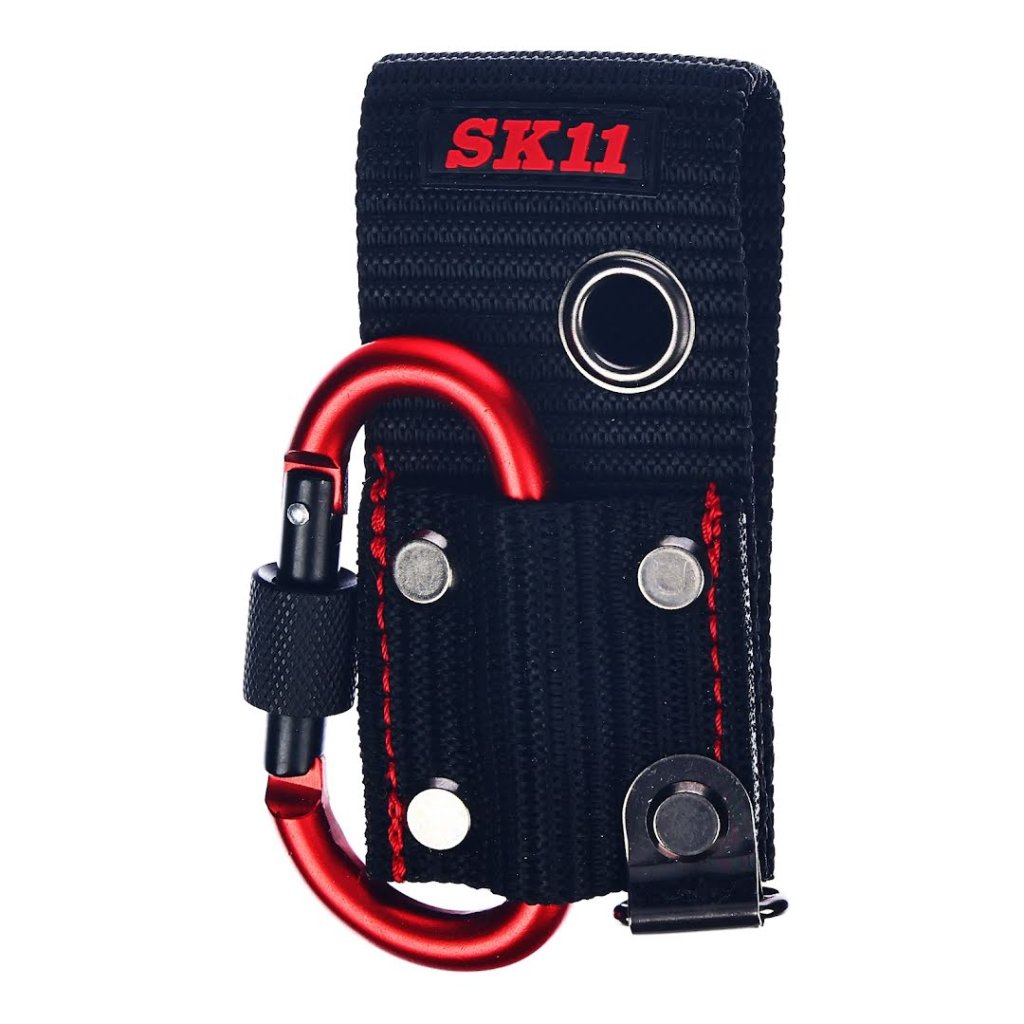 The SK11 Tool Holder, model STH2-2, is a versatile tool holder designed for easy attachment and removal of tools. This holder has a detachable loop belt system, allowing quick and convenient tool access. The product measures 50 mm in width, 120 mm in height, and 50 mm in depth and weighs about 60 g. It is compatible with belts up to 60 mm wide, making it a practical addition to any tool belt setup.