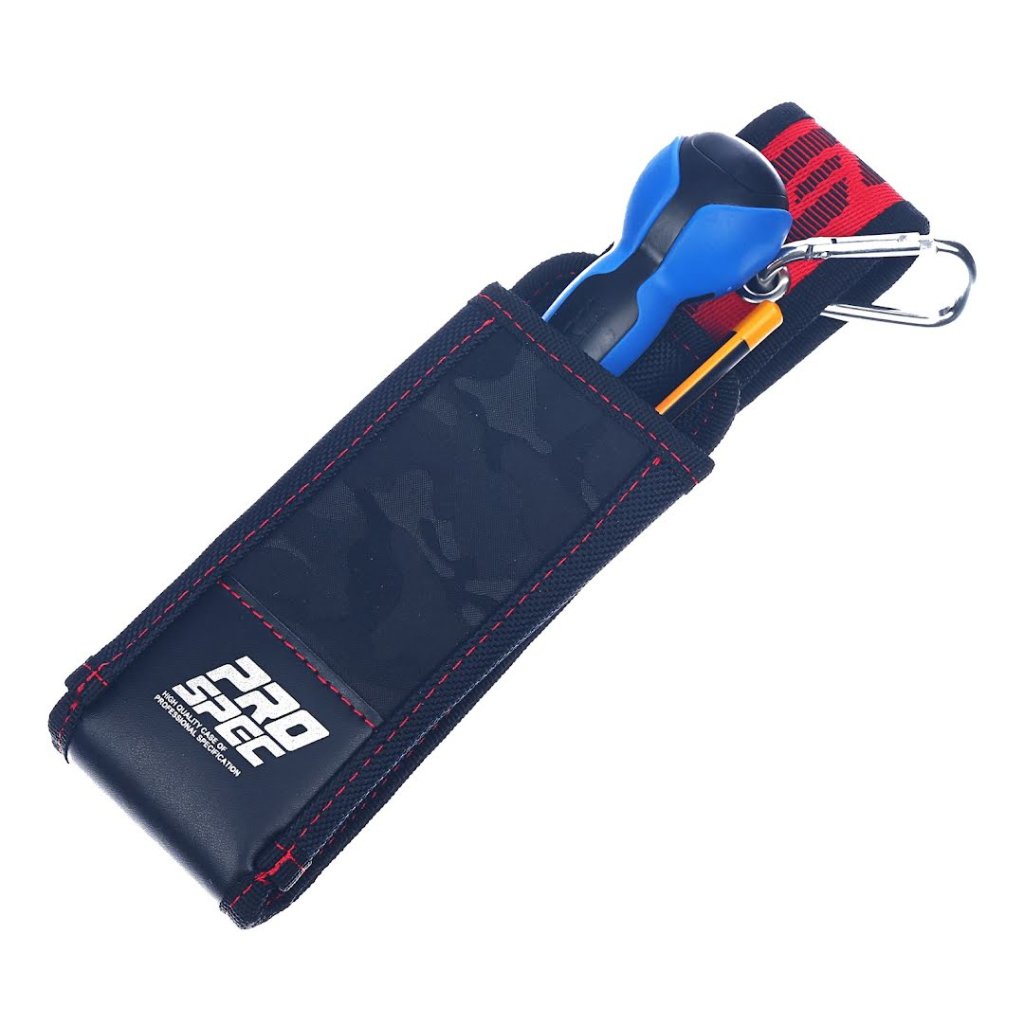 The SK11 Tool Pouch, model PRO-RD6, is designed with professionals in mind, focusing on durability, ergonomic design, and comfort fit. This compact tool pouch measures 70 mm in width, 260 mm in height, and 50 mm in depth and weighs about 100 g, making it ideal for easy storage and portability. The belt loop section is made of flexible belt material that fits comfortably. It suits belts up to 60 mm wide and ensures your tools are always within reach.