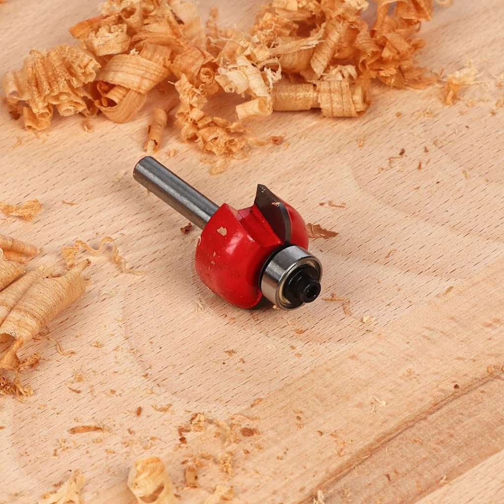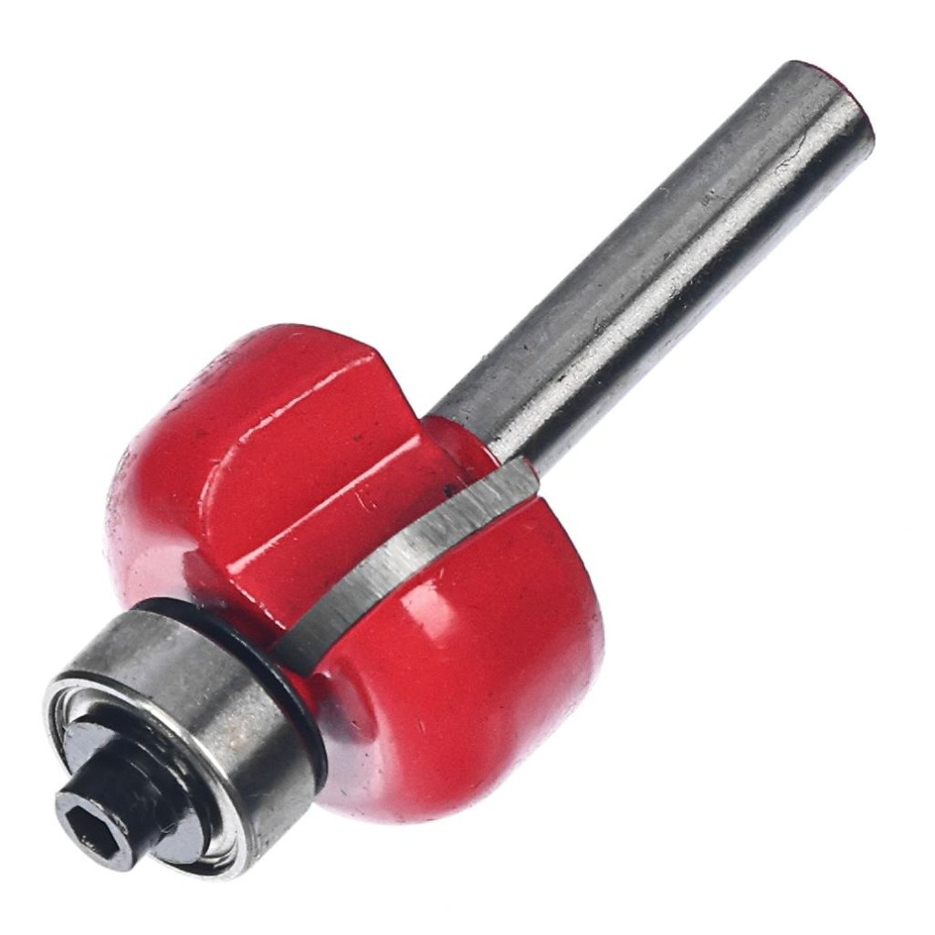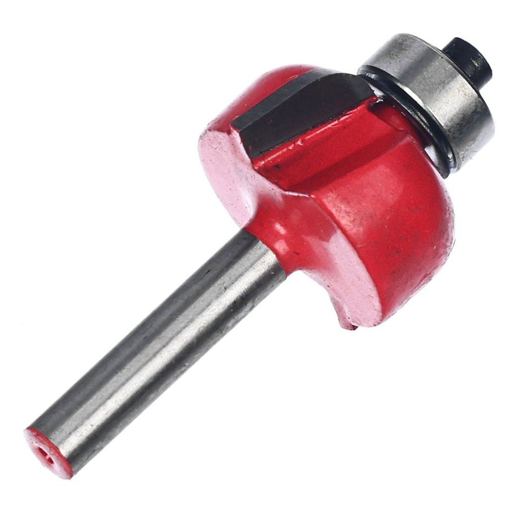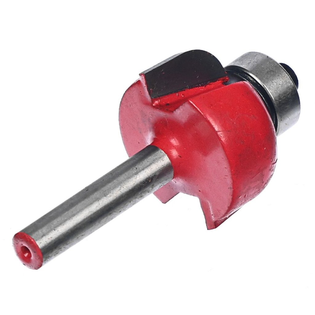 The SK11 Tungsten Carbide Tipped Router Bit, model SRB-20, is ideal for grooving and chamfering wood. This classical cove trimmer bit features a highly durable tungsten carbide tip, ensuring long-lasting performance. The bit measures 25 mm in diameter, has a 6 mm shank, and includes a 12.7 mm ball bearing for precision work.
