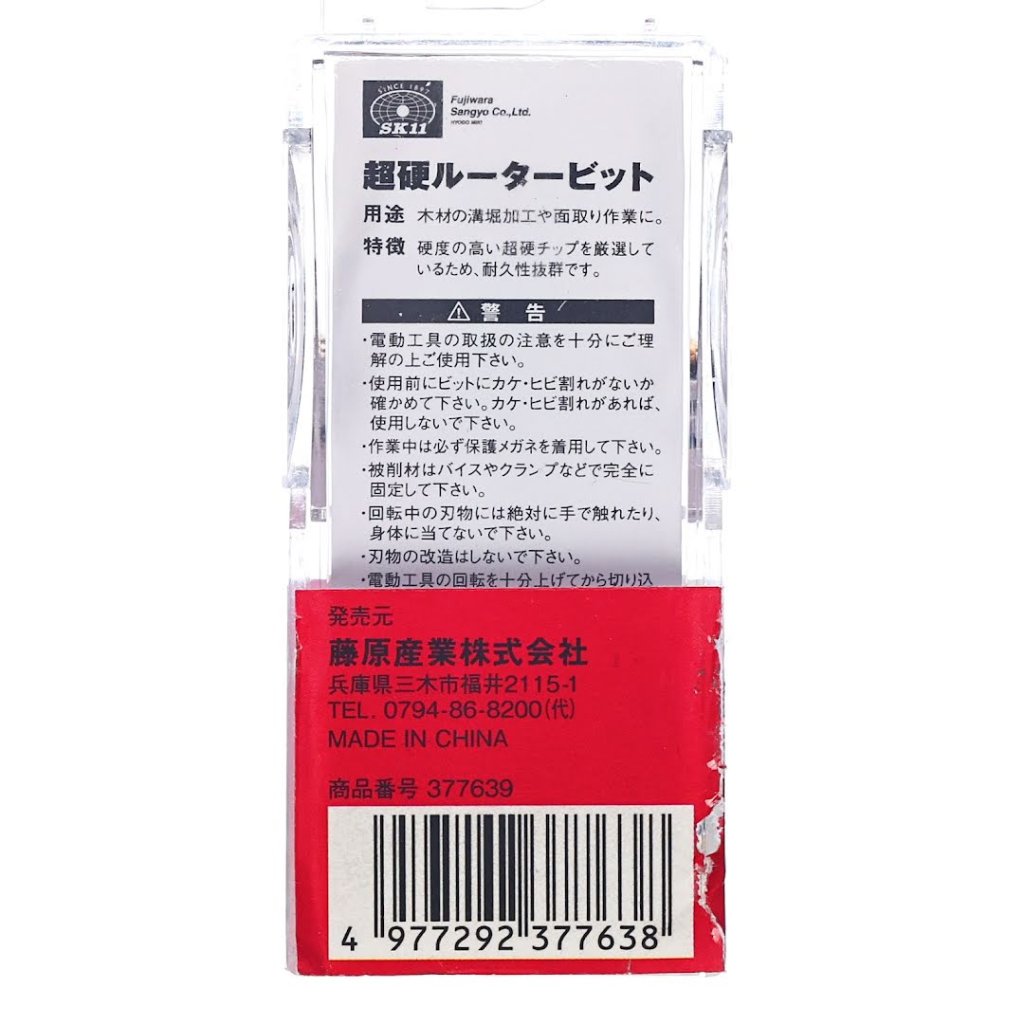 The SK11 Tungsten Carbide Tipped Router Bit, model SRB-34, is ideal for grooving and chamfering wood. This trimmer bit features a high-hardness, premium carbide tip for exceptional durability. It measures 12.7 mm in diameter and 55 mm in height, with a 6 mm shank diameter.