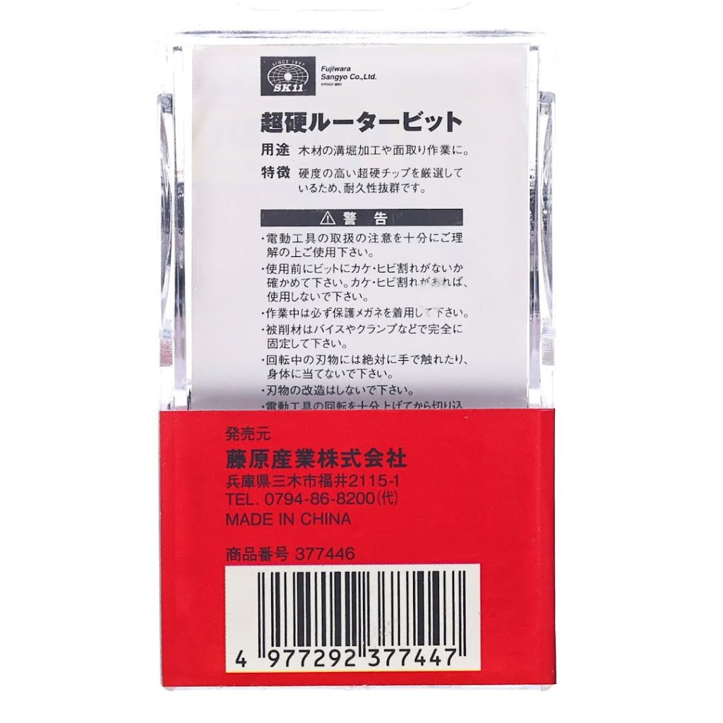 The SK11 Tungsten Carbide Tipped Router Bit, model SRB-15, is ideal for grooving and chamfering wood. Its durable tungsten carbide tip ensures long-lasting performance. Its 6 mm shank diameter fits most common routers, and its precise 27 mm cutting width ensures clean and accurate cuts.