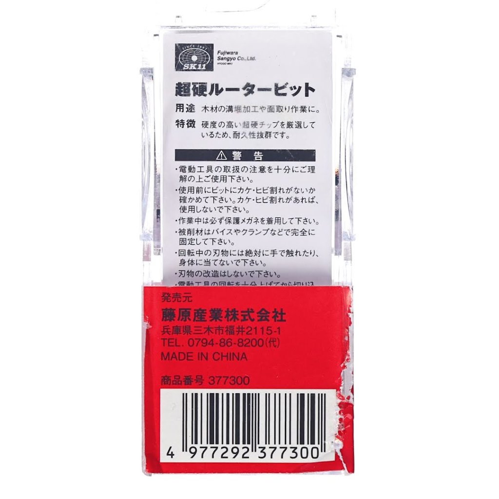 The SK11 Tungsten Carbide Tipped Router Bit, model SRB-1, is ideal for grooving and chamfering woodwork. This bit features a high-hardness carbide tip selected for its exceptional durability. It is designed for precise and efficient performance with a 3 mm cutting diameter and a 6 mm shank. The router bit measures 37 x 98 x 37 mm and weighs 40 g.