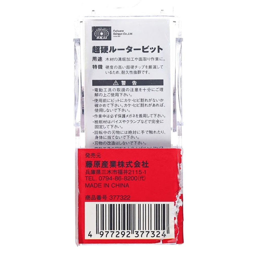 The SK11 Tungsten Carbide Tipped Router Bit, model SRB-3, is perfect for grooving and chamfering wood. This trimmer bit features a high-hardness carbide tip, ensuring excellent durability. With a bit size of 5 mm and a shank diameter of 6 mm, it is ideal for precision woodworking tasks. The product dimensions are 37 x 98 x 37 mm, weighing 40 g.
