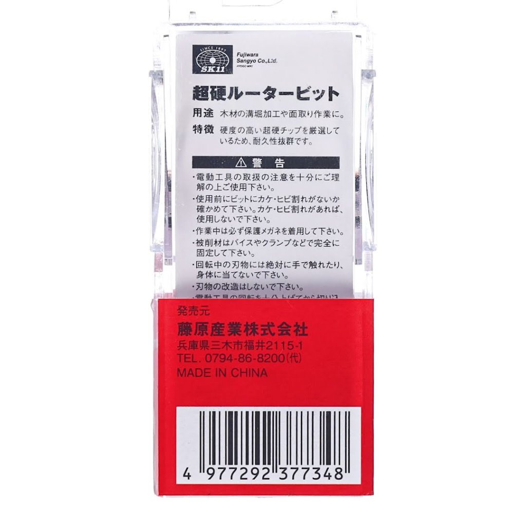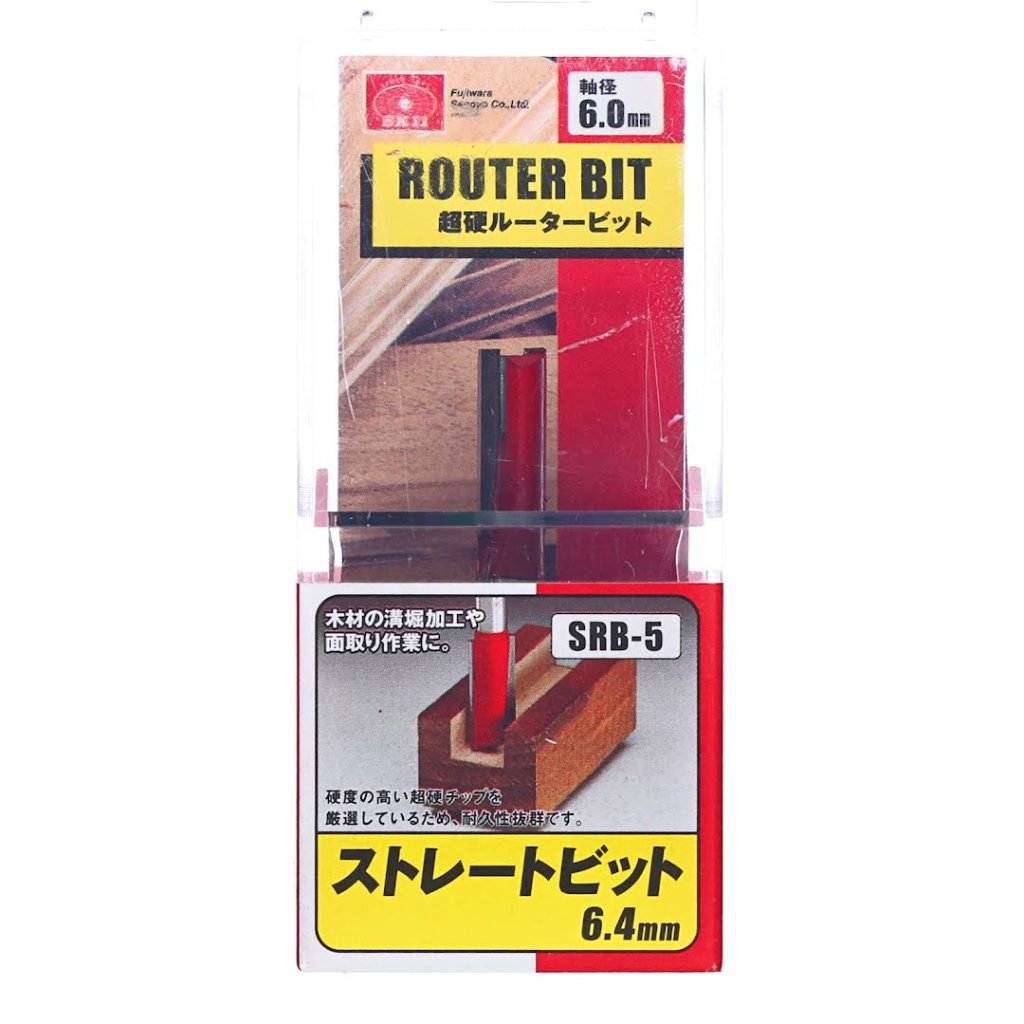 The SK11 Tungsten Carbide Tipped Router Bit, model SRB-5, is ideal for grooving and chamfering wood. This 6.4 mm bit features a high-hardness carbide tip for exceptional durability. Its dimensions are 37 mm in width, 98 mm in height, and 37 mm in depth, with a 6 mm shank diameter. Ensure precision by testing on materials before use.