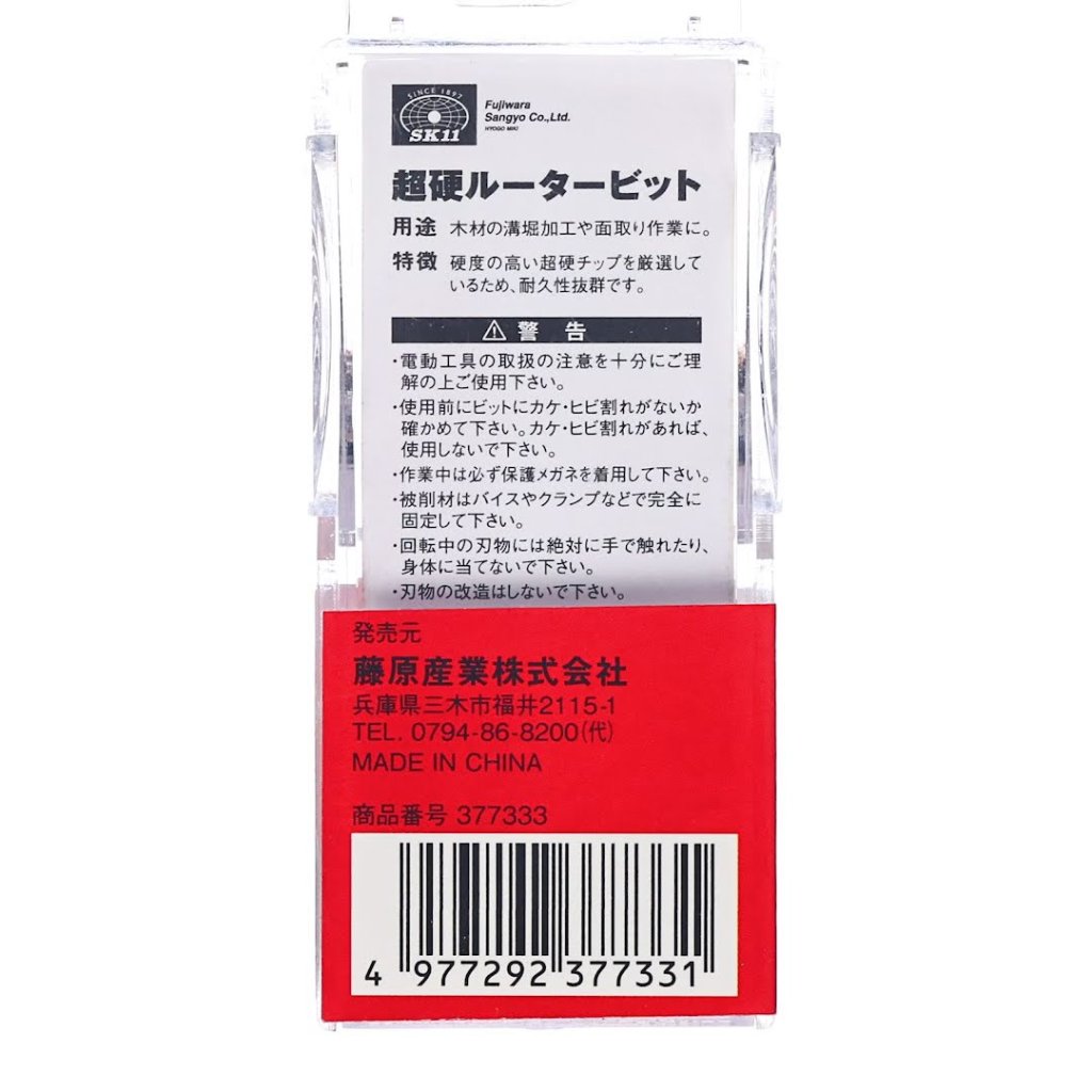 The SK11 Tungsten Carbide Tipped Router Bit, model SRB-4, is ideal for wood grooving and chamfering tasks. It features a high-hardness carbide tip for exceptional durability. The router bit measures 6 mm in diameter with a 6 mm shank and is designed to deliver precise cuts. Please handle with care to avoid damaging the bit or causing injury.