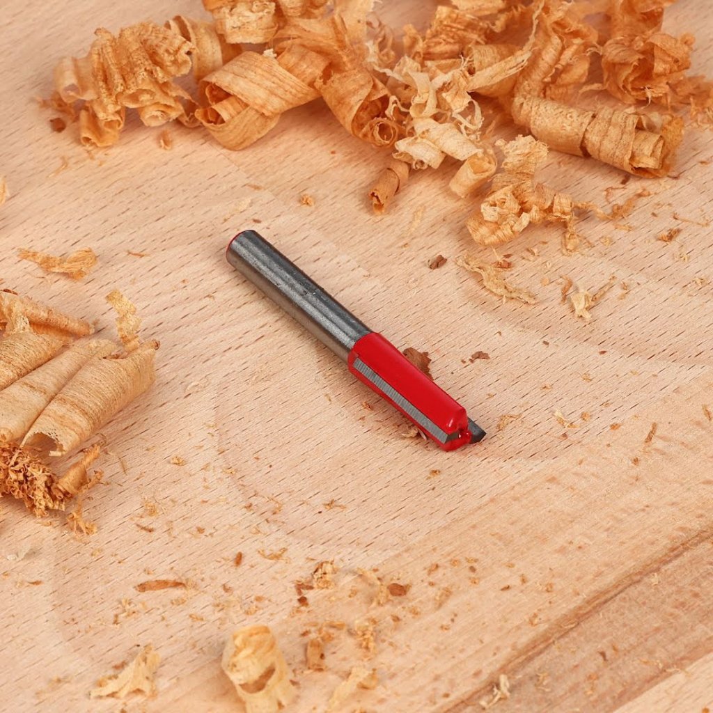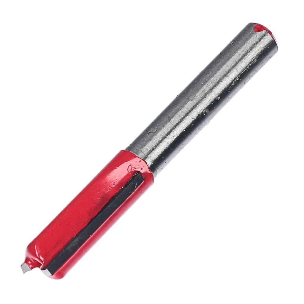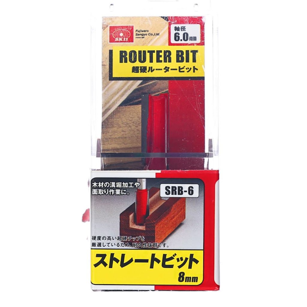 The SK11 Tungsten Carbide Tipped Router Bit, model SRB-6, is designed for grooving and chamfering wood. It features a highly durable carbide tip that ensures long-lasting performance. The bit measures 8 mm in diameter and 19 mm in height, with a 6 mm shank, making it suitable for various woodworking tasks. Ideal for precise work.