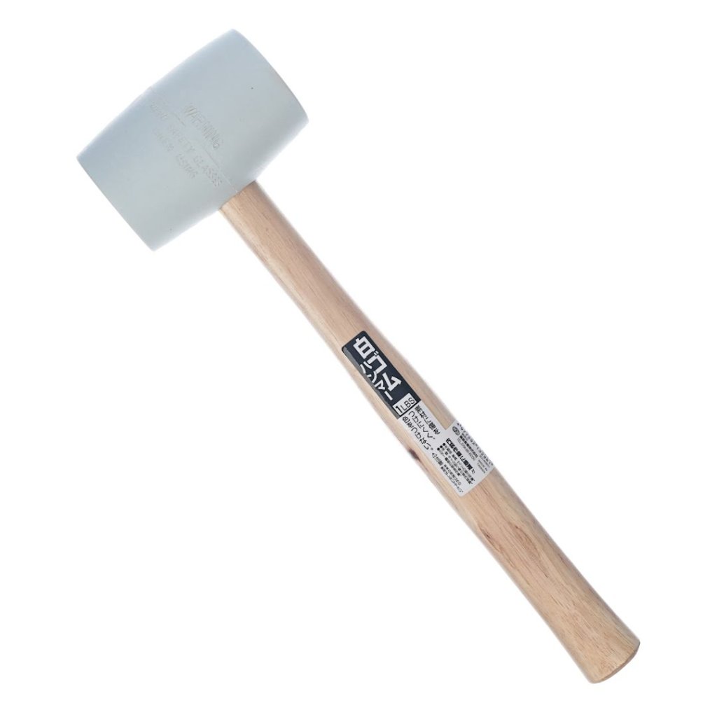 The SK11 Rubber Mallet is a versatile tool for precision work without damaging materials. Its white rubber head is engineered to minimize scuffs and discoloration, making it ideal for assembling wooden products, furniture, and window frames, as well as for interior decoration and sheet metal work on colored steel plates. The mallet's dimensions of 100 x 350 x 60 mm and a weight of 660 g ensure a comfortable grip and balanced swing. Its wooden handle offers durability and a natural feel.
