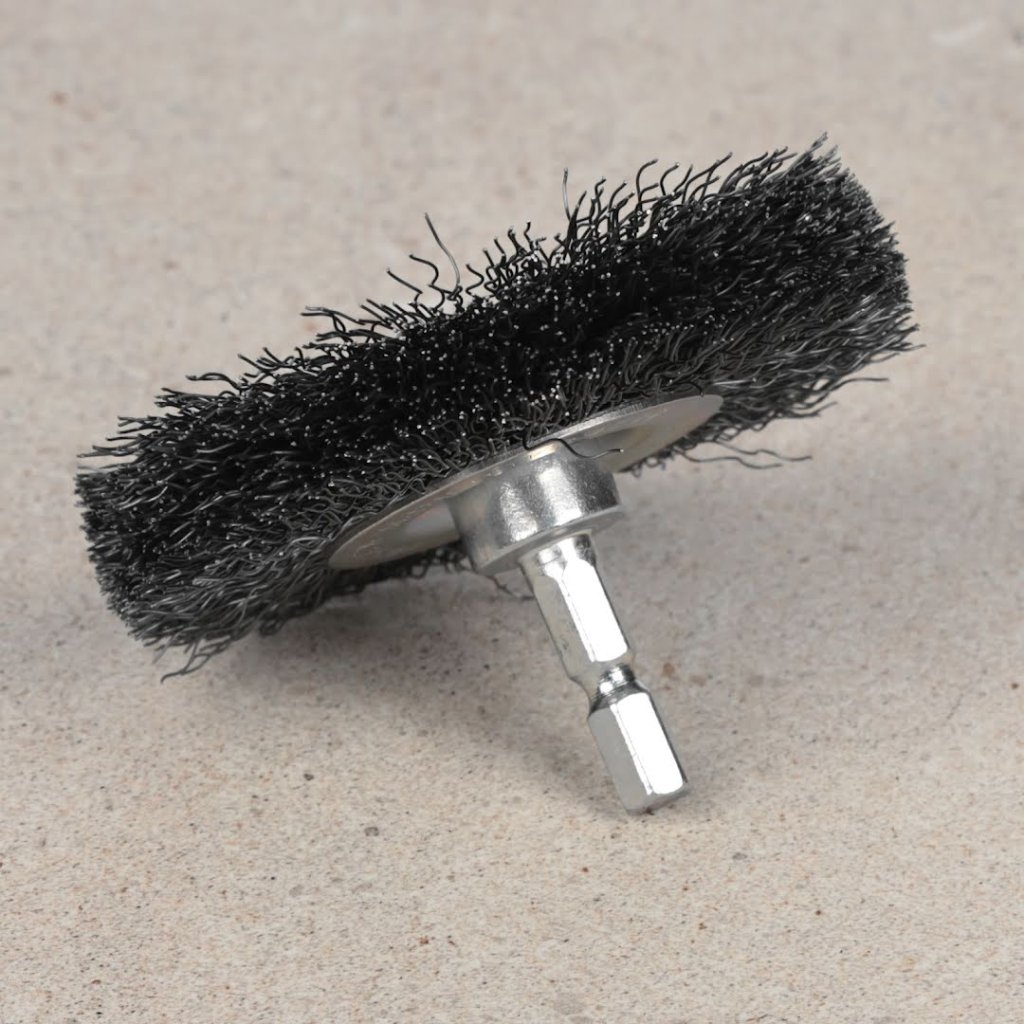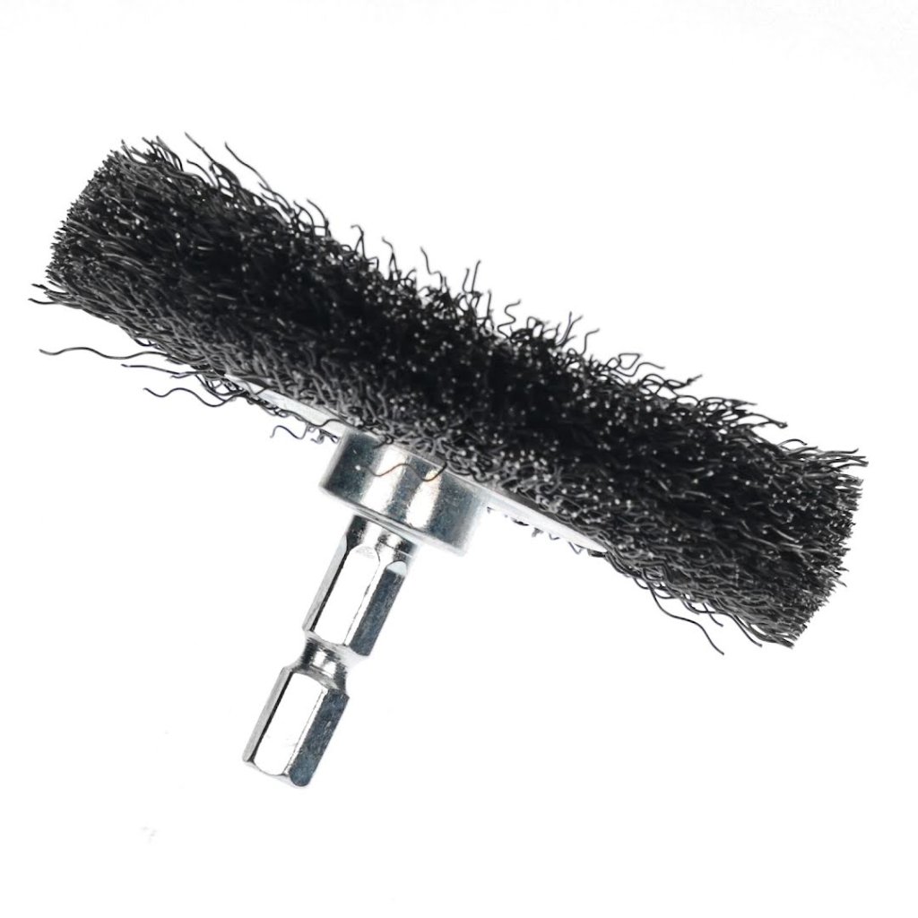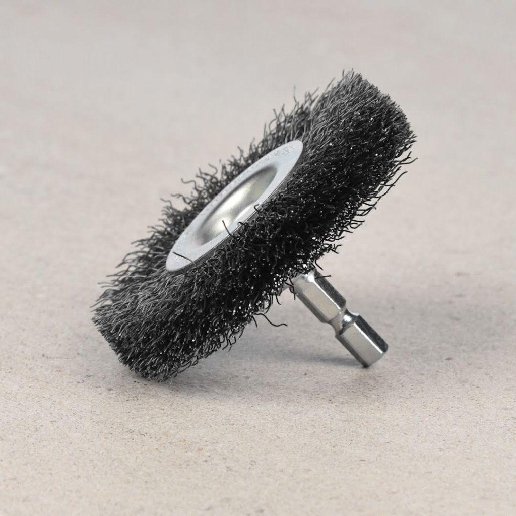 The SK11 Wire Wheel Brush is perfect for removing rust, stripping paint, and cleaning pipes. With a 6.35 mm hex shank, it attaches effortlessly to impact drivers for versatile use. It is also ideal for finishing tasks on iron, light metals, and even wood.