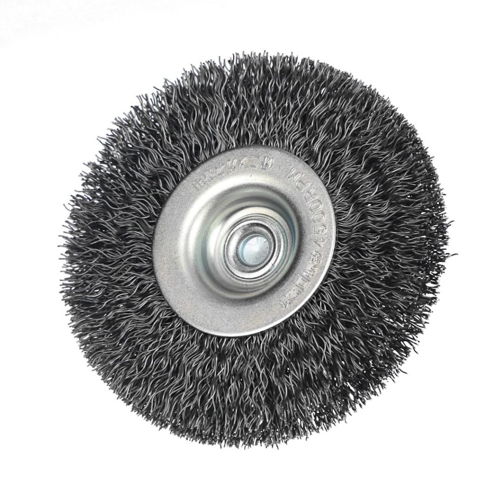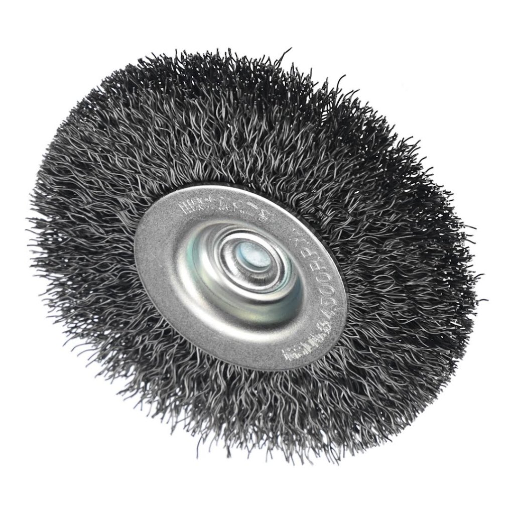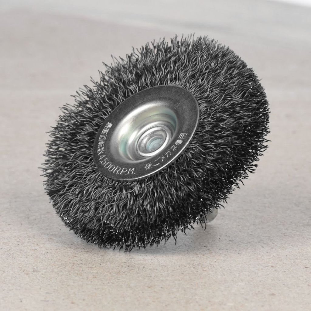 The SK11 Wire Wheel Brush is perfect for removing rust, stripping paint, and cleaning pipes. With a 6.35 mm hex shank, it attaches effortlessly to impact drivers for versatile use. It is also ideal for finishing tasks on iron, light metals, and even wood.