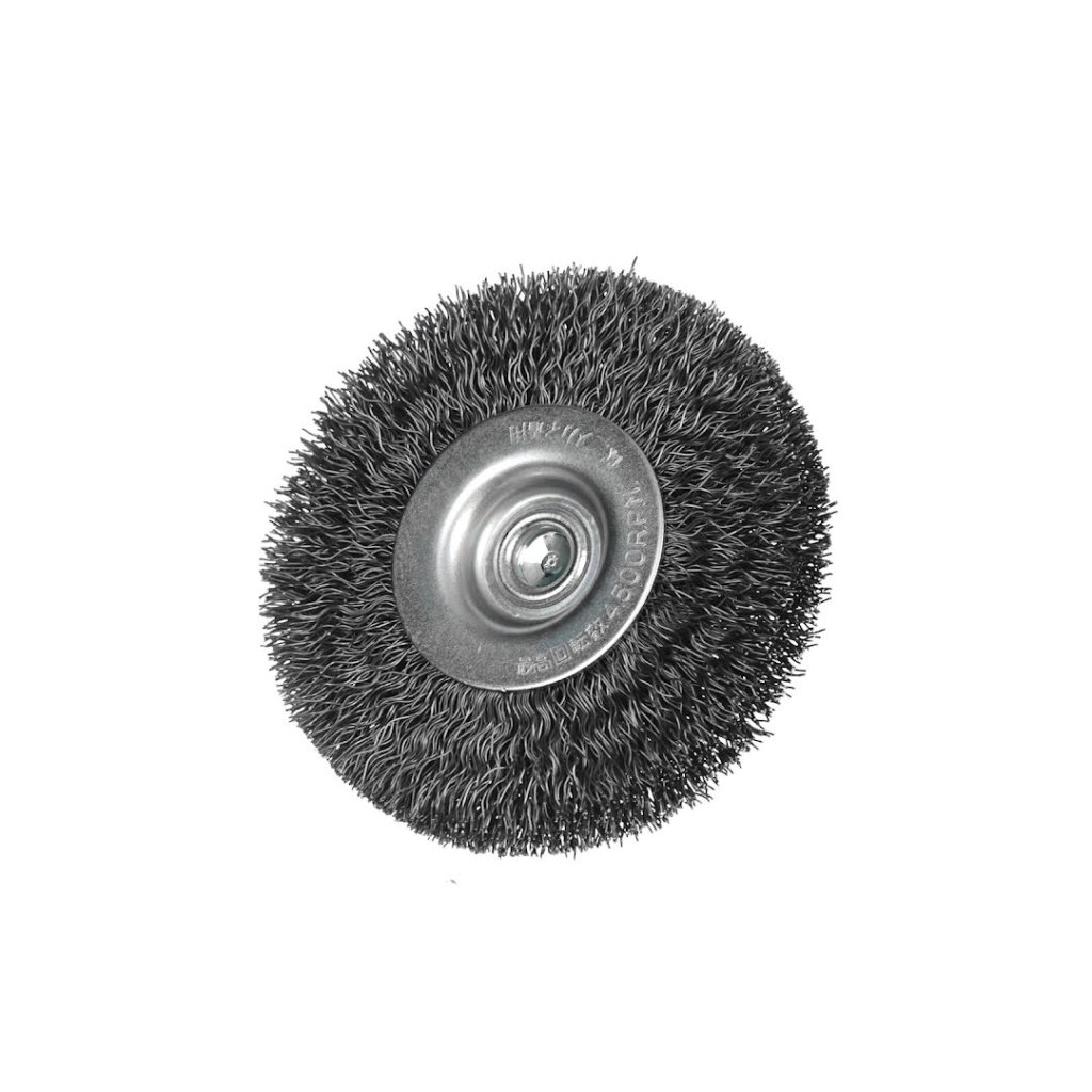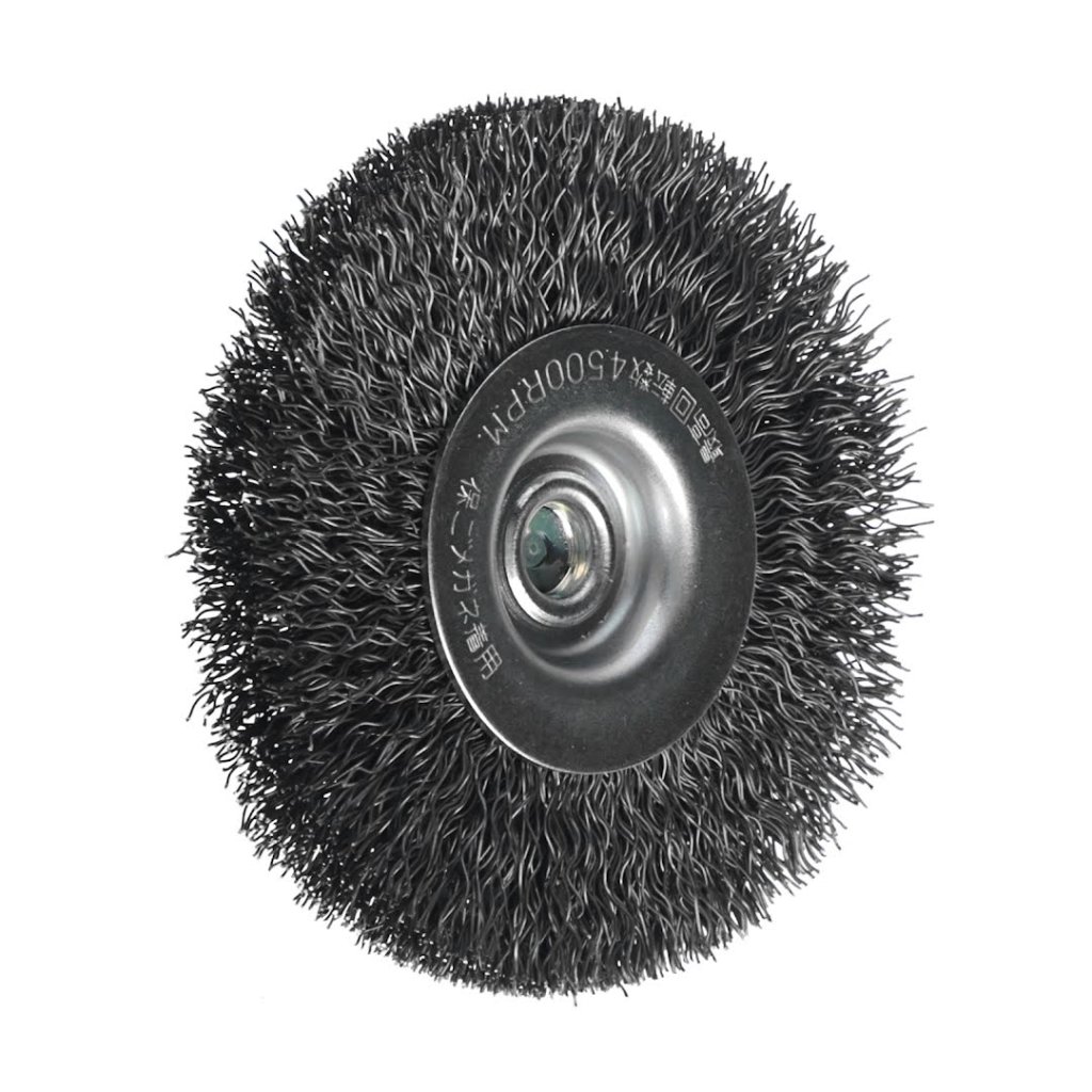 The SK11 Crimped Wire End Brush is ideal for rust removal, paint stripping, and deburring.