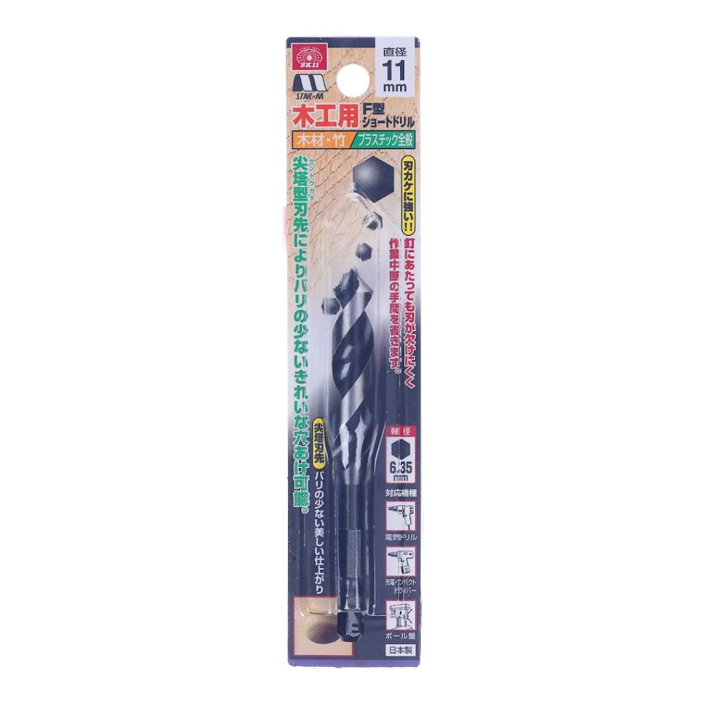 The STAR-M Japanese Brad Point Auger Bit is designed for precision and durability, measuring 11 x 95 x 11 mm. It's an ideal tool for renovations and crafts and is suitable for drilling into wood, bamboo, and plastic. Its sharpened brad point tip ensures easy positioning and clean, burr-free holes. The bit features a 6.35 mm hex shank, compatible with electric drills, cordless impact drivers, and drill presses, enhancing its versatility. Made in Japan, this bit is engineered for lightness and improved chip evacuation, while its design reduces the risk of blade breakage even when hitting nails. Note: It is not for use with metal, stainless steel, or concrete, and high-speed tools exceeding 3000 RPM should be avoided.