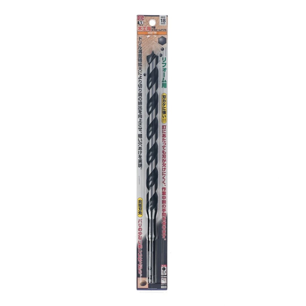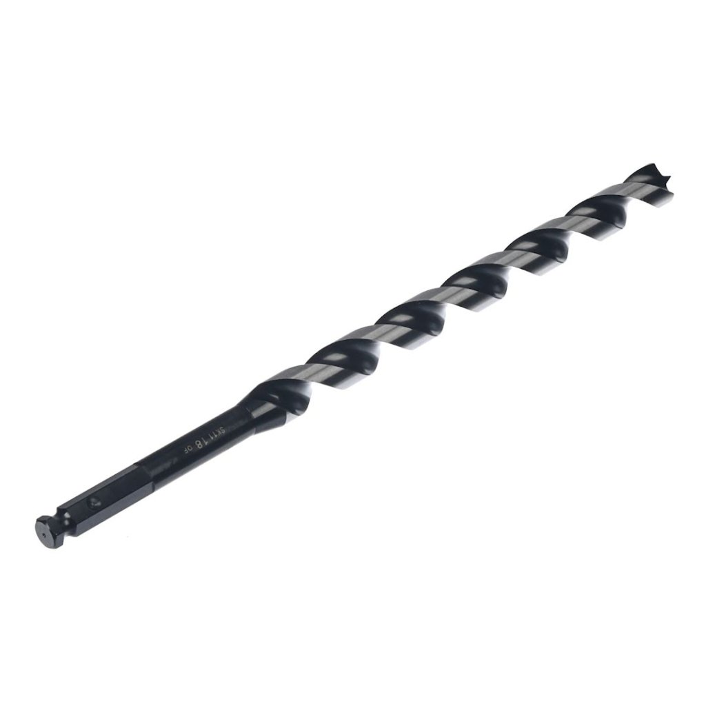 The STAR-M Japanese Long Brad Point Auger Bit is designed for precise drilling in wood and bamboo, making it ideal for renovation projects. Featuring an 18 mm diameter, a sharp, pointed tip for easy positioning, and expanded fluting to enhance light weight and chip ejection, this auger bit ensures clean, burr-free holes. Thanks to its 12.5 mm hex shank, it fits electric drills and is crafted in Japan for high-quality performance.