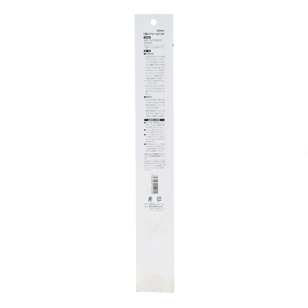 The STAR-M Japanese Long Brad Point Auger Bit is ideal for drilling holes in wood and bamboo, making it perfect for renovation projects. With a size of 24 mm x 234 mm x 324 mm and a weight of 260 g, it features a pointed tip for easy positioning and creates clean holes with minimal burrs. The bit is designed to resist chipping even when encountering nails, reducing work interruptions. Its expanded flute area improves both lightness and chip removal efficiency. Suitable for use with electric drills.