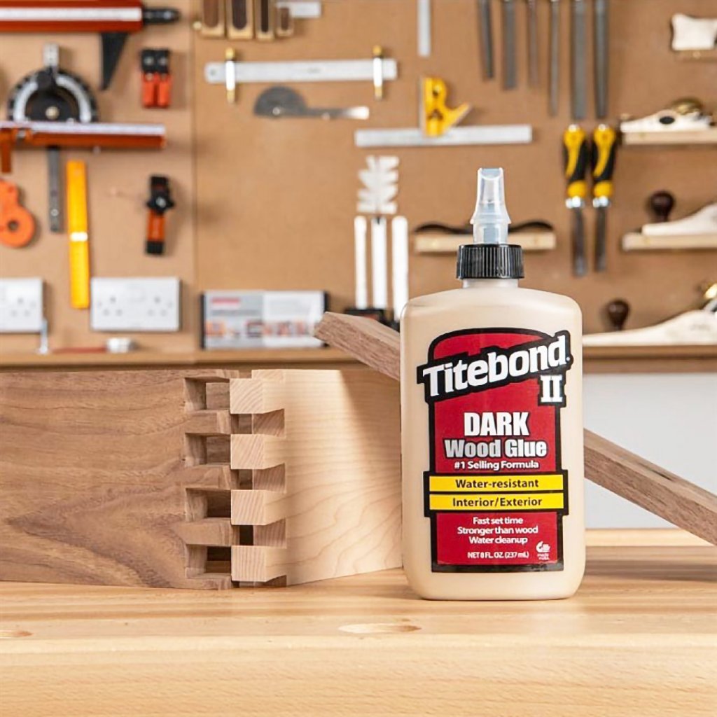 The Titebond II Dark is the dyed-version of the Titebond Premium II wood glue that develops a brown coloured dried film making it ideal for use on darker woods. Provides a strong initial tack with a fast speed of set. Develops a bond stronger than the wood itself, and offers excellent sandability while being unaffected by finishes. Easy to use, non-toxic and can be cleaned up by a damp cloth when the glue is wet.