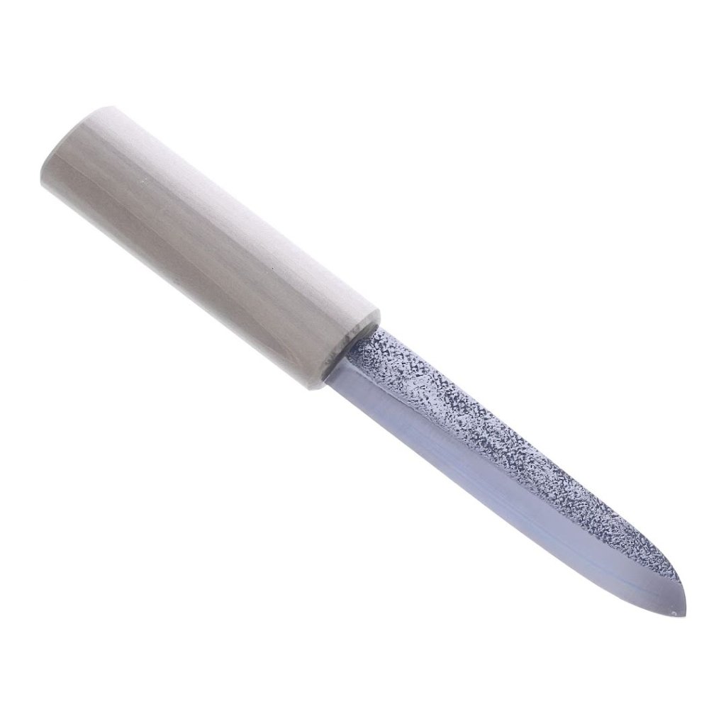 Versatile MIKI HAMONO SEISAKUSHO Japanese utility knife with a 150-mm blade made of rust-resistant VG10 steel. Perfect for precise peeling and decorative cuts. Made in Japan.