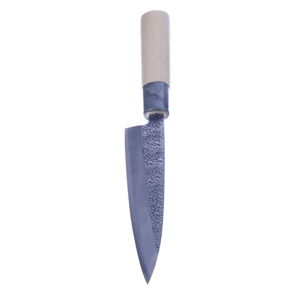 The UMEBACHI RYUMA Japanese Multi-Purpose Kitchen Knife, featuring a hammertone finish and a blade length of 150 mm, is a fusion of traditional craftsmanship and new technology, designed to offer durability, flexibility, and lasting sharpness. Its lightweight design (95 g) makes it versatile for home and outdoor use, ideal for precise tasks such as filleting small fish. Crafted with a single-edged blade, this knife is a testament to the excellence in cutlery that RYUMA stands for. Please use it as intended and avoid hard or frozen materials to maintain its pristine condition.