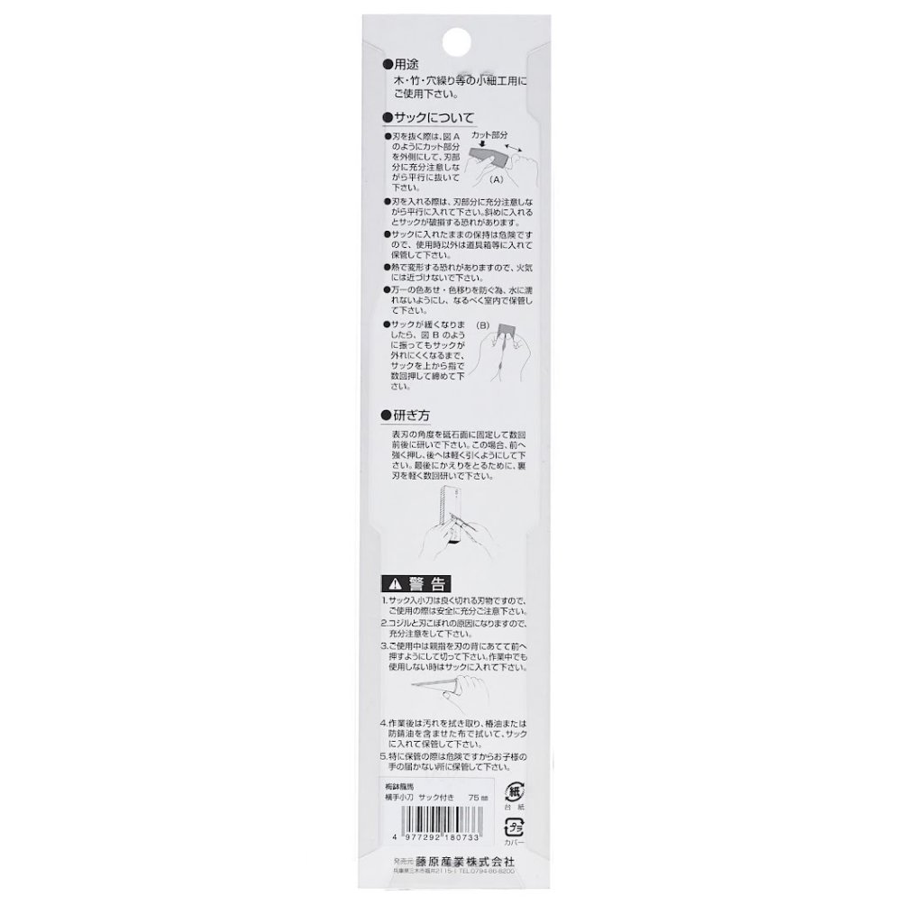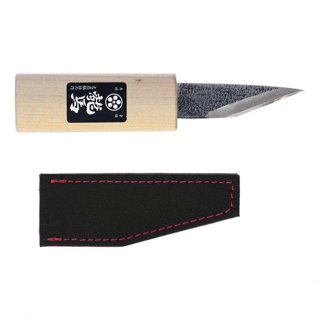 The UMEBACHI RYUMA Yokote-Kogatana Japanese Knife is ideal for detailed woodworking and bamboo crafting tasks. Its 75 mm blade enhances cutting precision and is designed for intricate work. The included durable sheath protects the blade when not in use. Users can easily sharpen the blade with a whetstone if needed. The knife measures 32 x 166 x 18 mm and weighs only 47 g, making it a compact and essential tool for fine craftsmanship.